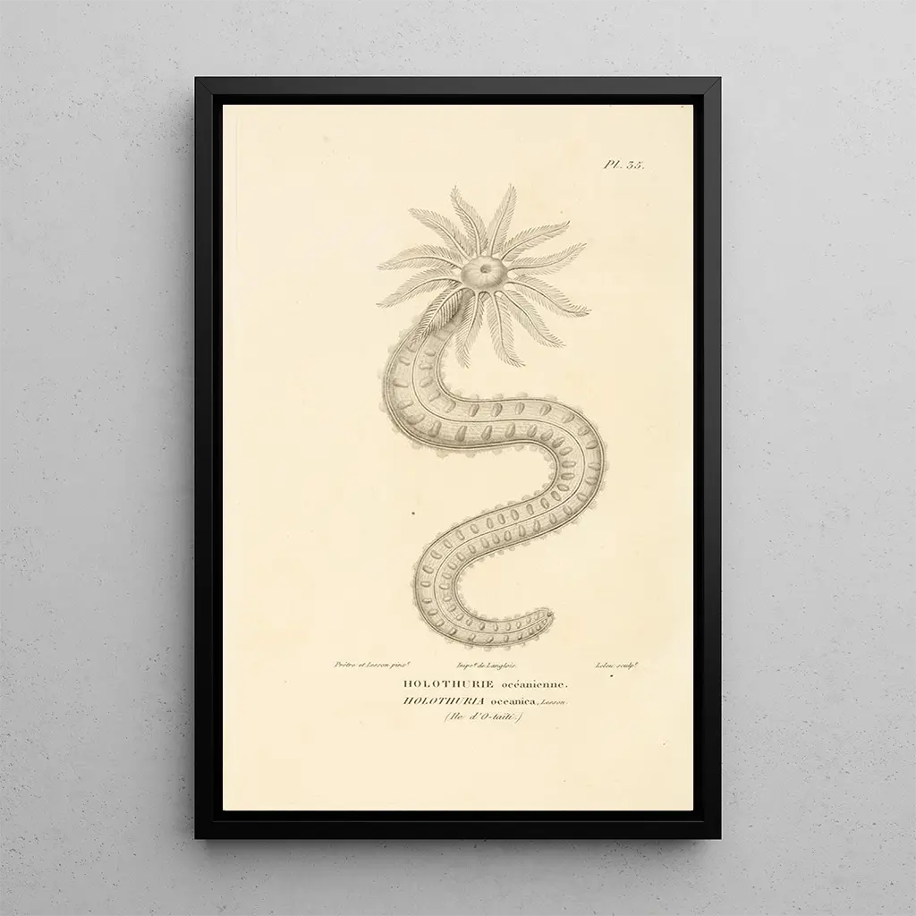 Druk artystyczny Centurie zoologique Pl35 ukazuje paletę jaskrawych kolorów i delikatnych kształtów, ilustrując bogactwo różnorodności biologicznej. Każde stworzenie jest przedstawione z metodyczną starannością, oferując zarówno artystyczną, jak i naukową wizję fauny. Atmosfera emanująca z tego dzieła jest jednocześnie uspokajająca i pobudzająca, zachęcając do uważnej kontemplacji. Technika druku, połączona z wyczuciem detali, pozwala ożywić te zwierzęta, czyniąc ten druk artystyczny szczególnie fascynującym.