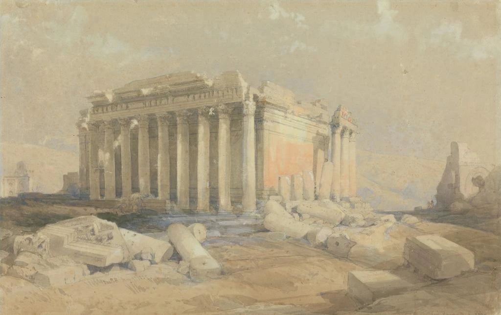 David Roberts, szkocki malarz XIX wieku, jest znany z przedstawień pejzaży i zabytków Bliskiego Wschodu. Niezłomny podróżnik, potrafił uchwycić piękno starożytnych miejsc poprzez swoje dzieła. Pod wpływem romantyzmu, zdołał połączyć precyzję z poezją, oddając hołd architekturze i kulturze, które spotkał. Jego podróże do Egiptu i Libanu głęboko wpłynęły na jego styl, czyniąc go pionierem w gatunku pejzażu orientalnego. Le Temple de Baalbek jest jednym z jego najsłynniejszych dzieł, świadectwem jego talentu i zaangażowania w utrwalenie tych cudów.