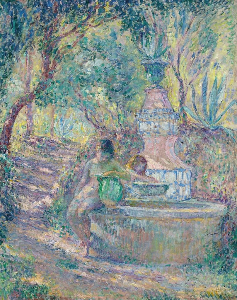Saint - Tropez, dwie młode dziewczyny przy fontannie - Henri Lebasque