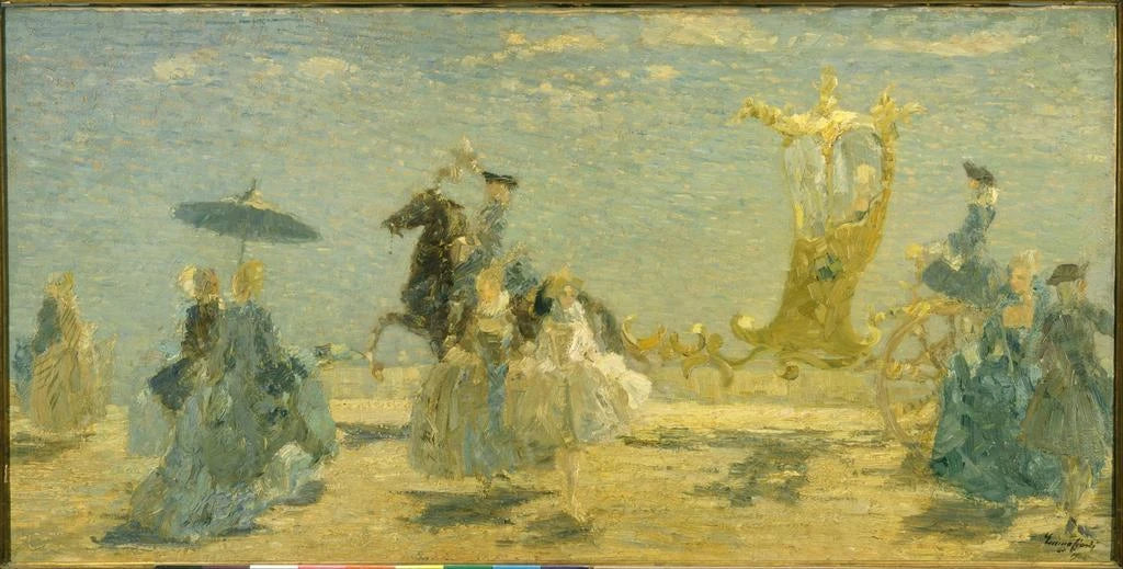 Emma Ciardi, włoska artystka aktywna pod koniec XIX i na początku XX wieku, jest znana z pejzaży morskich i przedstawień morza. Zainspirowana impresjonizmem, potrafiła uchwycić piękno wybrzeży i fal z wyjątkową wrażliwością. Jej kariera, choć mniej znana niż jej męskich rówieśników, odcisnęła piętno na jej epoce dzięki zdolności do przekazywania emocji i światła. "Symfonia w błękicie" świadczy o jej talencie i zaangażowaniu w przedstawianie natury, czyniąc ją ważną postacią w historii sztuki.