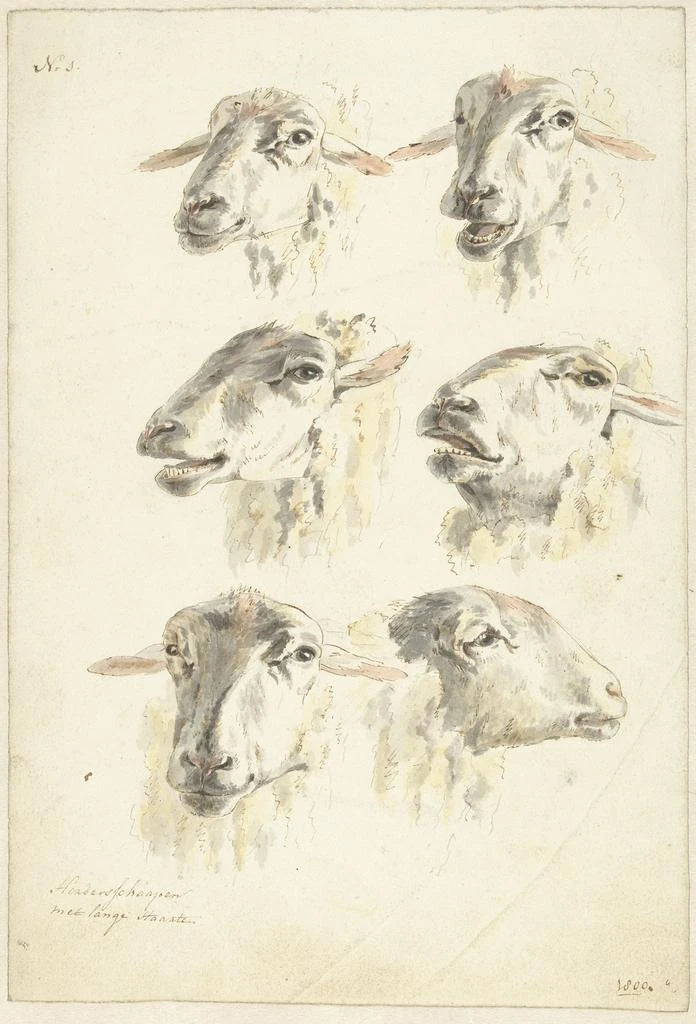 Feuille d'étude avec six têtes de mouton : une exploration de la nature