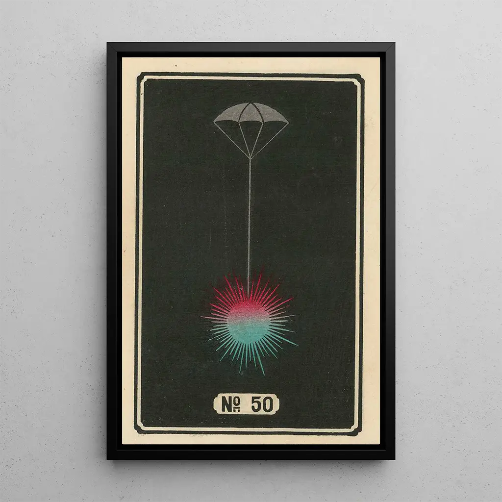 Dans cette reproduction de Feux d'artifice nocturnes n° 50, Jinta Hirayama nous plonge dans un spectacle visuel éblouissant. Les couleurs vives et chatoyantes explosent sur la toile, créant une atmosphère festive et joyeuse. Les nuances de bleu profond et de doré scintillant évoquent la magie des nuits d'été, où les feux d'artifice illuminent le ciel étoilé. La technique délicate de l'artiste, mêlant aquarelle et encre, donne vie à chaque explosion, chaque étincelle, transportant le spectateur dans un monde de rêve et de célébration.