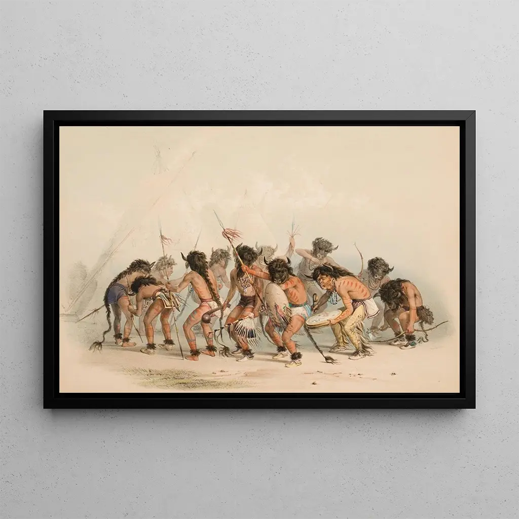 Danse des bisons : celebracja dzikiej przyrody Druk artystyczny Danse des bisons autorstwa George'a Catlina przenosi nas do żywego świata, w którym fauna i kultura rdzennych Amerykanów splatają się ze sobą. To dzieło, wykonane w odcieniach ziemistych i z akcentami światła, przywołuje majestat bizonów w ich naturalnym środowisku. Dynamiczne ruchy zwierząt, uchwycone techniką malarstwa olejnego, przekazują namacalną energię. Catlin, swoim uważnym spojrzeniem, udaje się uwiecznić nie tylko bizony, ale także ducha polowania i głębokie połączenie między człowiekiem a naturą. George Catlin : pionier amerykańskiej sztuki George Catlin, aktywny w XIX wieku, jest uznawany za jednego z pierwszych artystów dokumentujących kultury rdzennych Amerykanów poprzez swoje dzieła. Pod wpływem podróży po Stanach Zjednoczonych, rozwinął unikalny styl łączący realizm z romantyzmem. Jego pasja do zachowania tradycji i stylów życia ludów autochtonicznych jest wyczuwalna w jego pracach. Catlin stworzył szeroką kolekcję dzieł, które świadczą o bogactwie kulturowym narodów rdzennych Amerykanów, czyniąc go kluczową postacią w historii amerykańskiej sztuki. Dekoracyjny nabytek o wielu zaletach Druk artystyczny Danse des bisons to element dekoracyjny, który wzbogaci każde wnętrze, niezależnie czy to salon, biuro czy sypialnia. Jakość druku i wierne oddanie oryginału gwarantują niezapomniany efekt estetyczny. Wprowadzając ten obraz do swojej aranżacji, dodajesz odrobinę historii i kultury, tworząc jednocześnie ciepłą i przyjazną atmosferę. Ten obraz to nie tylko element dekoracyjny, ale także zaproszenie do kontemplacji i refleksji nad pięknem dzikiej przyrody.