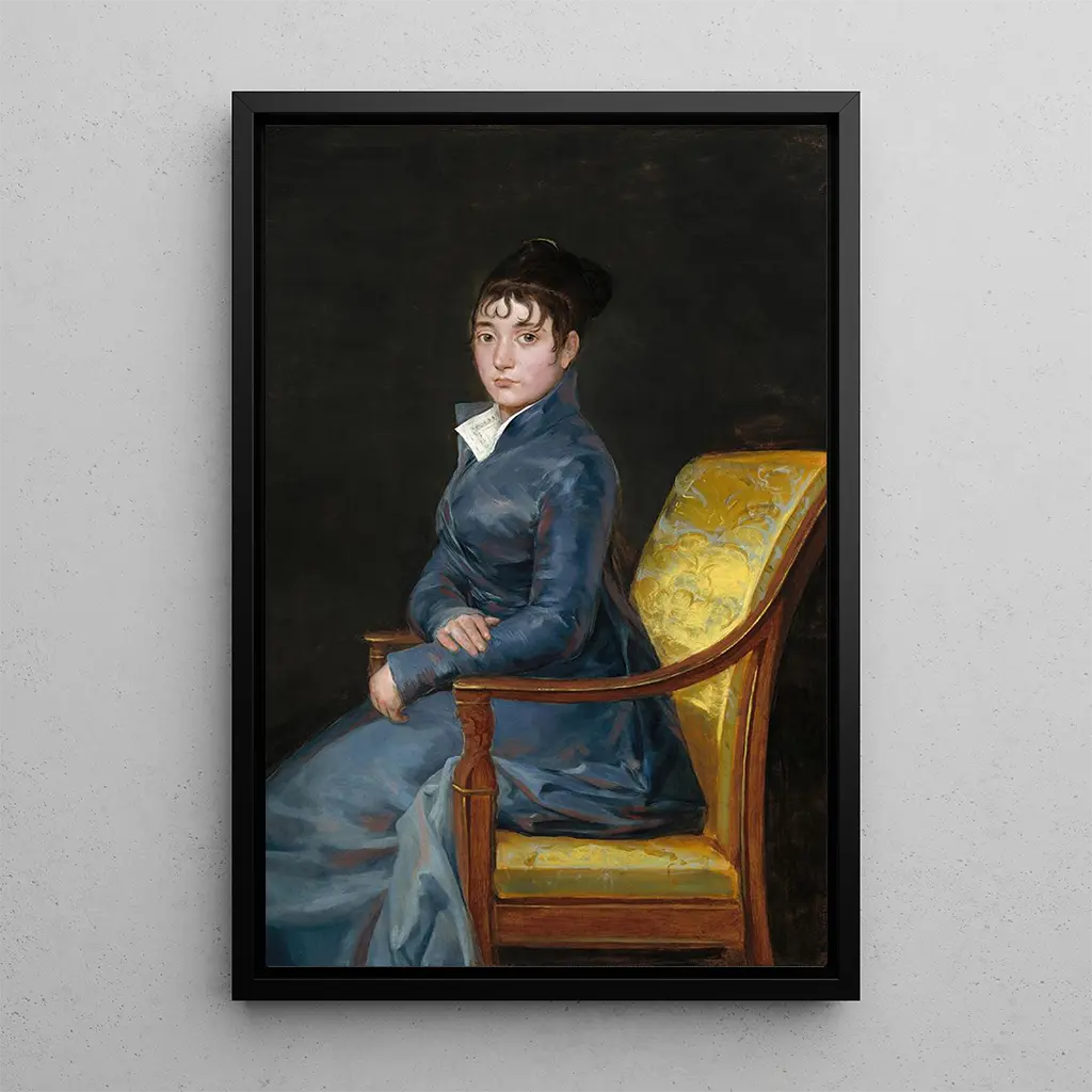 W tej reprodukcji Thérèse Louise de Sureda, Francisco de Goya uchwycił istotę kobiety jednocześnie silnej i zagadkowej. Ciemne i bogate kolory, typowe dla artysty, otaczają temat atmosferą głębi i złożoności. Technika Goyi, łącząca clair-obscur z odrobiną realizmu, ożywia ten portret, gdzie każdy szczegół, od tkaniny sukni po wyraz twarzy, opowiada historię. Światło odgrywa kluczową rolę, podkreślając delikatne rysy Thérèse, jednocześnie tworząc uderzający kontrast z tłem, zachęcając widza do uważnej kontemplacji.