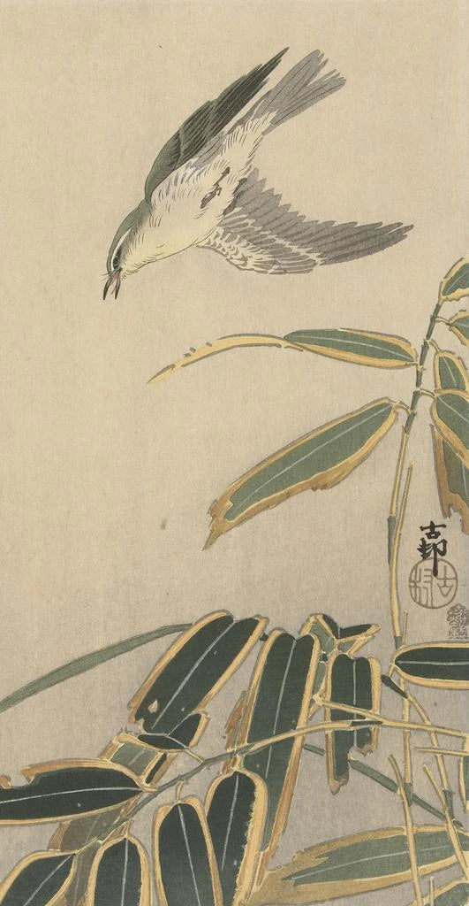 Druk artystyczny | Traquet avec bambou - Ohara Koson