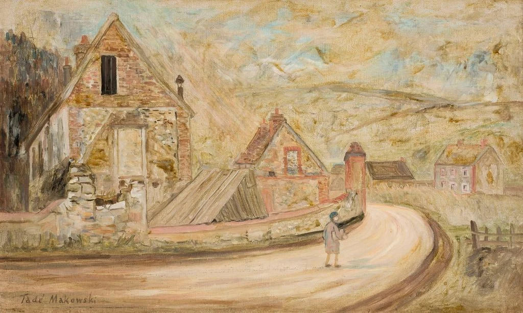 Tadeusz Makowski, urodzony w Polsce w 1882 roku, jest artystą, którego prace odzwierciedlają napięcia między tradycją a nowoczesnością. Działając głównie w latach 1920 i 1930, wpisuje się w ruch sztuki naiwej, jednocześnie integrując elementy impresjonizmu. Pod wpływem swojego wiejskiego otoczenia i krajobrazów młodości, Makowski rozwija unikalny styl, który celebruje prostotę i piękno codziennego życia. Jego dzieło charakteryzuje dążenie do autentyczności, starając się uchwycić istotę miejsc i chwil. "Route vers Merey" jest tego doskonałym przykładem, ilustrującym jego talent do przemiany zwykłych scen w niezwykłe wizualne doświadczenia.
