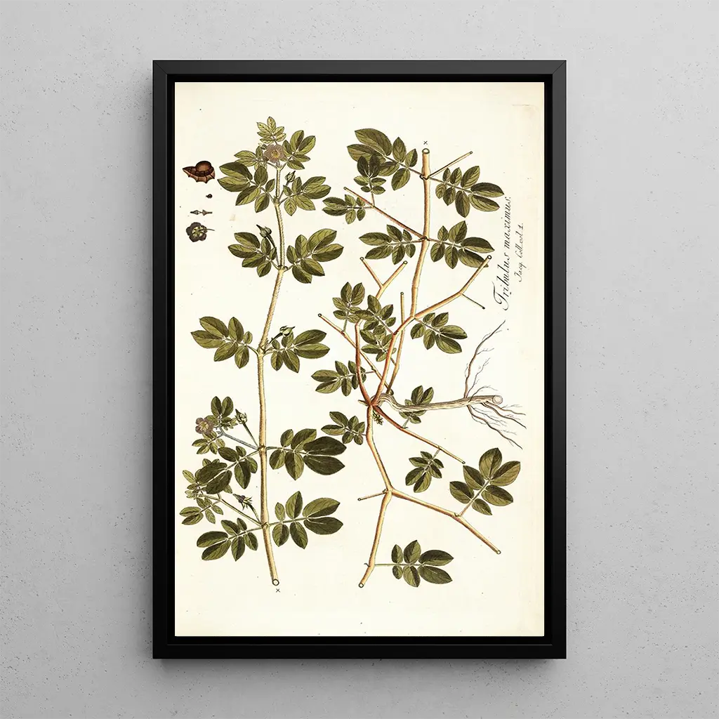 Druk artystyczny Tribulus maximus zaprasza do odkrycia surowego i dzikiego piękna tej ikonicznej rośliny. Dzieło Nikolausa Josefa Freiherr von Jacquina podkreśla drobne szczegóły liści i kwiatów, ukazując paletę żywych kolorów od głębokiej zieleni po jaskrawy żółty. Dynamiczna kompozycja tego płótna wywołuje skojarzenia z siłą i odpornością natury, jednocześnie przekazując atmosferę spokoju. Dzięki technice akwareli każdy element jest delikatnie oddany, oferując zarówno realistyczny, jak i artystyczny obraz tego gatunku roślinnego.