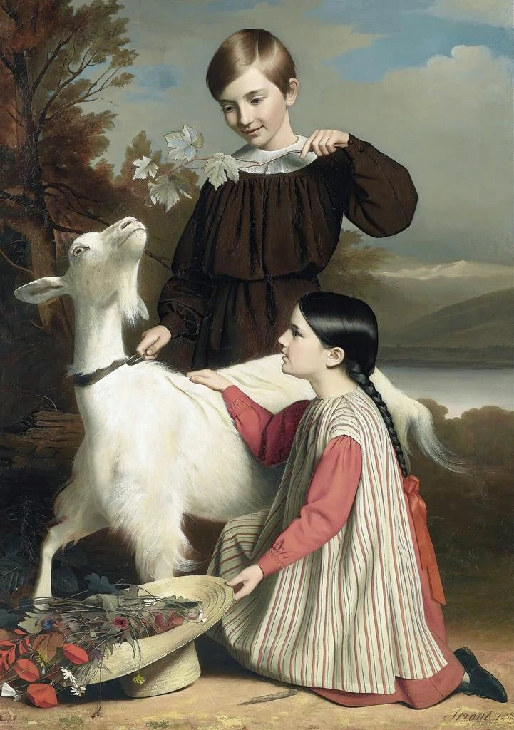 La reproduction de "Les Trois Amis" de Sébastien Straub évoque une scène chaleureuse et conviviale, où l'amitié est mise à l'honneur. Les couleurs vives et les traits expressifs des personnages créent une atmosphère joyeuse et engageante. Cette toile, riche en détails, capte l'essence des relations humaines, illustrant la complicité et la joie partagée entre amis. Les éléments de la nature environnante ajoutent une dimension supplémentaire à cette œuvre, renforçant le sentiment de bonheur et de camaraderie qui s'en dégage.