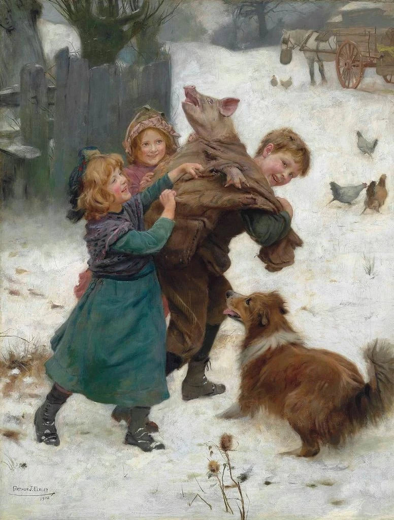 Arthur John Elsley, brytyjski malarz XIX wieku, jest znany z umiejętności uchwycenia niewinności dzieciństwa w swoich dziełach. Jego kariera, naznaczona wyostrzoną wrażliwością na ludzkie emocje, była pod wpływem ówczesnych nurtów artystycznych, w szczególności prerafaelitów. Elsley potrafił wybić się jako mistrz w dziedzinie malarstwa gatunkowego, skupiając się na tematach związanych z codziennym życiem i relacjami międzyludzkimi. Jego obrazy, często pełne dzieci i zwierząt, świadczą o dokładnej obserwacji i głębokiej sympatii.