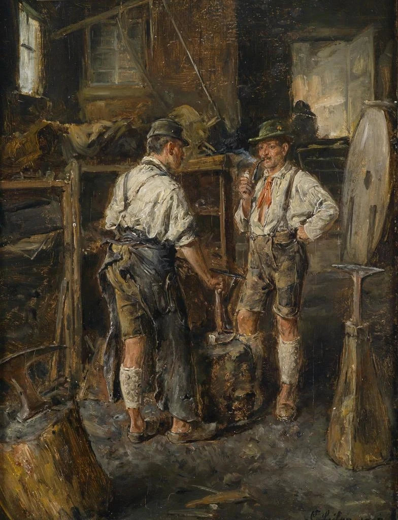 Carl Wilhelm Anton Seiler, niemiecki artysta, odcisnął swoje piętno na swojej epoce, tworząc dzieła celebrujące życie wiejskie i tradycyjne zawody. Pod wpływem romantyzmu, Seiler dążył do uchwycenia nie tylko rzeczywistości, ale także emocji z niej płynących. Jego zdolność do przedstawiania scen z codziennego życia z taką głębią emocjonalną uczyniła go szanowanym malarzem swojego czasu. Wprowadzając elementy natury i kultury popularnej do swoich dzieł, zdołał nawiązać więź między sztuką a życiem, wzmacniając znaczenie rzemiosła w społeczeństwie. "U kowala" jest przykładem tego podejścia, świadczącym o jego zaangażowaniu w uwiecznianie zawodów zagrożonych wyginięciem i