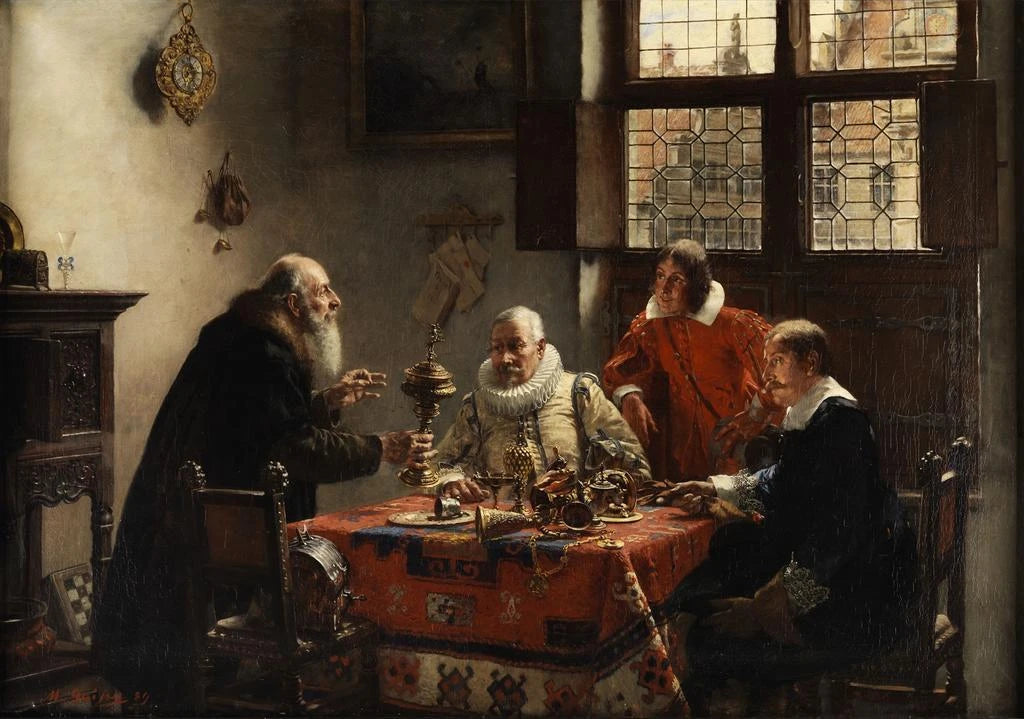 Dans "Chez le marchand d'art", Max Gaisser nous plonge dans une atmosphère vivante où l'art et la vie quotidienne se rencontrent. Cette toile, riche en couleurs chaudes et en détails minutieux, dépeint un moment de transaction artistique, où les personnages semblent discuter avec passion des œuvres qui les entourent. Les jeux de lumière et d'ombre ajoutent une profondeur à la scène, tandis que les textures des vêtements et des objets créent un sentiment de réalisme saisissant. L'œuvre invite le spectateur à s'immerger dans cet univers, à ressentir l'énergie qui émane des échanges entre les personnages.