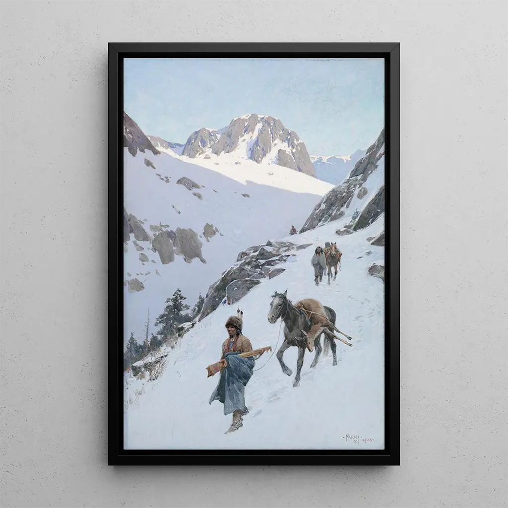Henry Farny, aktywny pod koniec XIX wieku, jest znany z zaangażowania w wierne i pełne szacunku przedstawianie życia plemion amerykańskich. Jego wykształcenie artystyczne w Europie i immersja w kulturę amerykańską pozwoliły mu wypracować unikalny styl, łączący realizm z romantyzmem. Farny był pod wpływem majestatycznych krajobrazów, które spotkał, oraz opowieści społeczności amerykańskich, które starał się uwiecznić w swojej sztuce. Jego dzieła, w tym "Udane polowanie", stały się cennymi świadectwami epoki, gdy te tradycje były zagrożone zapomnieniem.