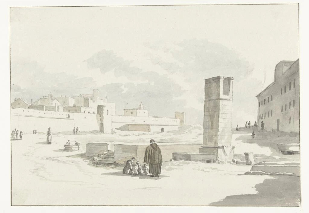 Abraham Louis Rodolphe Ducros, actif à la fin du XVIIIe siècle et au début du XIXe siècle, est un artiste français qui a joué un rôle clé dans le développement du paysage romantique. Influencé par ses voyages en Italie, il a su transcrire la beauté des paysages urbains et naturels avec une sensibilité unique. Ducros a été l'un des premiers à utiliser l'aquarelle comme moyen d'expression artistique, ce qui lui a permis de capturer des scènes avec une légèreté et une fluidité remarquables. Sa "Vue de la ville à Giovenazzo" est un exemple emblématique de son style, alliant précision et émotion.