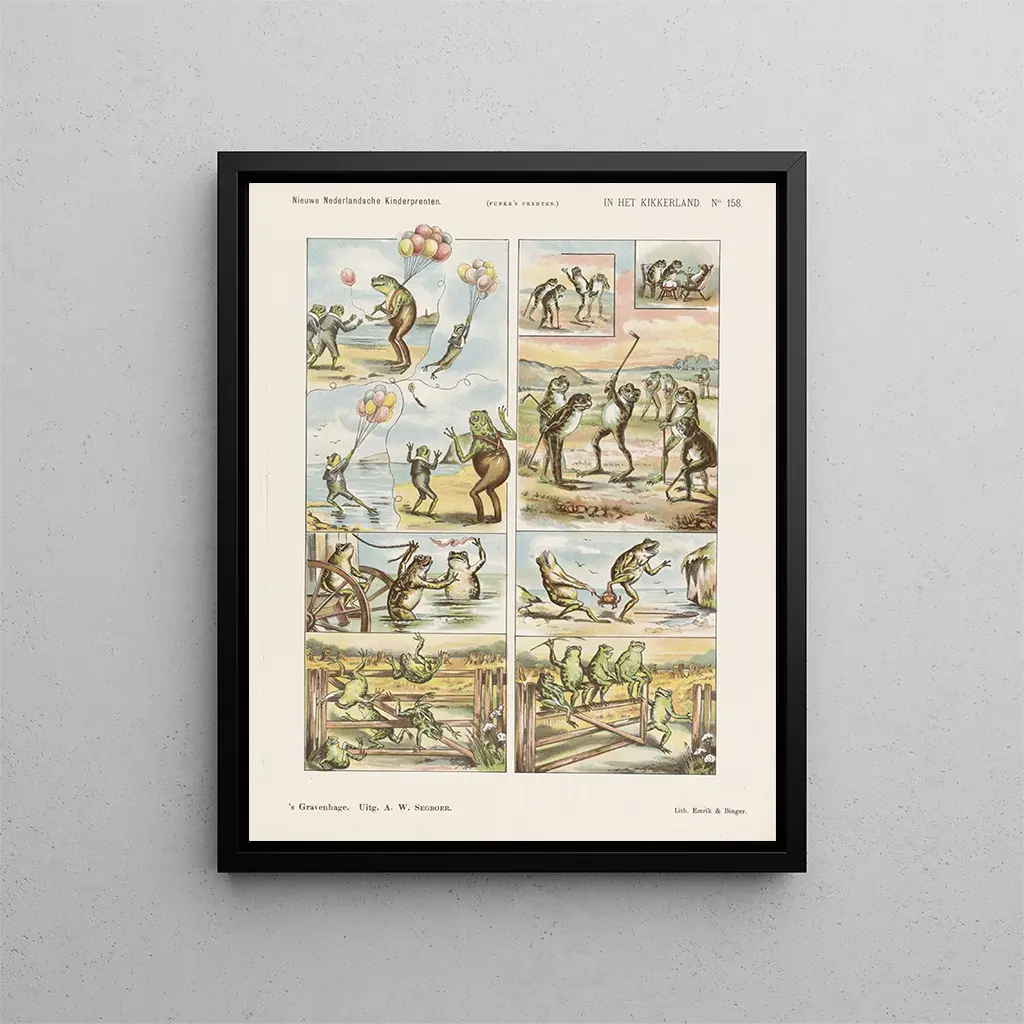 Emrik Binger, artysta holenderski aktywny w XX wieku, jest znany ze swoich dzieł, które uchwycają życie naturalne w sposób zarówno poetycki, jak i realistyczny. 'W kraju żab' jest ikonicznym drukiem artystycznym, który ilustruje jego zainteresowanie fauną. Obraz przedstawia sceny z mokradeł, gdzie żaby i inne stworzenia wodne poruszają się w zielonym otoczeniu. Styl Binger'a charakteryzuje się żywymi kolorami i staranną dbałością o szczegóły, co pozwala widzowi odczuć natychmiastowe połączenie z naturą. Ten obraz, jak wiele innych dzieł artysty, jest nie tylko artystyczną reprezentacją, ale także zaproszeniem do kontemplacji naszego naturalnego środowiska. W kontekście współczesnym, to dzieło ma szczególne znaczenie, ponieważ przypomina o znaczeniu bioróżnorodności i ochrony naturalnych siedlisk. Twórczość Binger'a znajduje odzwierciedlenie w obecnych troskach o ekologię i zrównoważony rozwój. Aby w pełni docenić piękno tego druk artystyczny, zachęcamy do odkrycia jego reprodukcji na Artem Legrand.