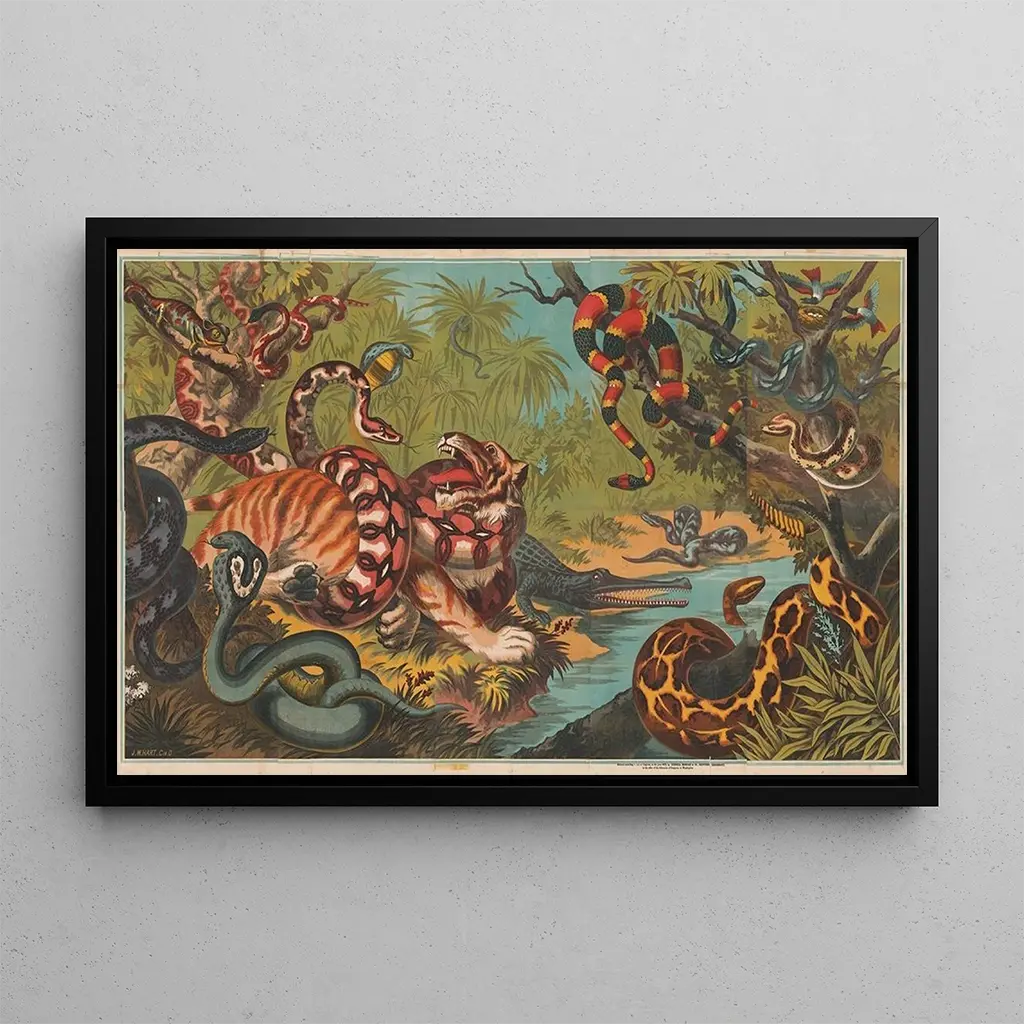 Druk artystyczny Serpent de la jungle étranglant un animal to odważny element, który z pewnością przyciągnie uwagę w każdym wnętrzu. Niezależnie od tego, czy znajdzie się w salonie, biurze czy sypialni, ta płótno wnosi odrobinę egzotyki i dynamizmu do Twojej dekoracji. Jakość druku gwarantuje wierne oddanie każdego szczegółu oryginalnego dzieła, pozwalając cieszyć się każdym detalem. Wprowadzając ten druk artystyczny do swojego wnętrza, tworzysz punkt centralny, który wzbudza ciekawość i podziw, jednocześnie celebrując dzikie piękno natury. Zdobądź to dzieło, aby wzbogacić swoją kolekcję i przemienić przestrzeń w miejsce ucieczki i zachwytu.