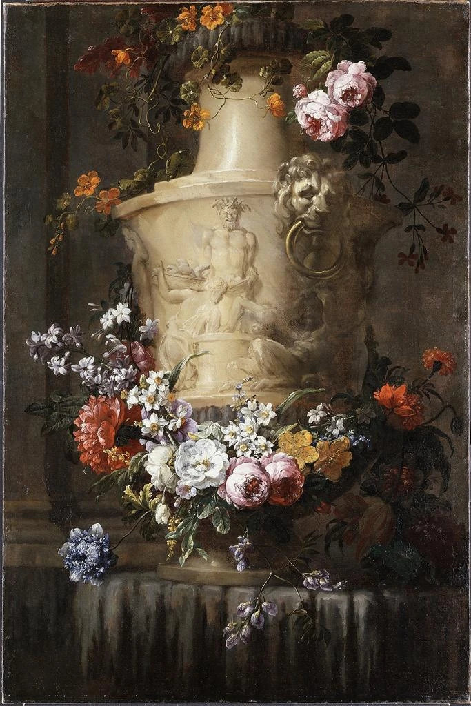 Obraz Wazon z marmuru z girlandą kwiatów - Jean-Baptiste Monnoyer | Druk artystyczny