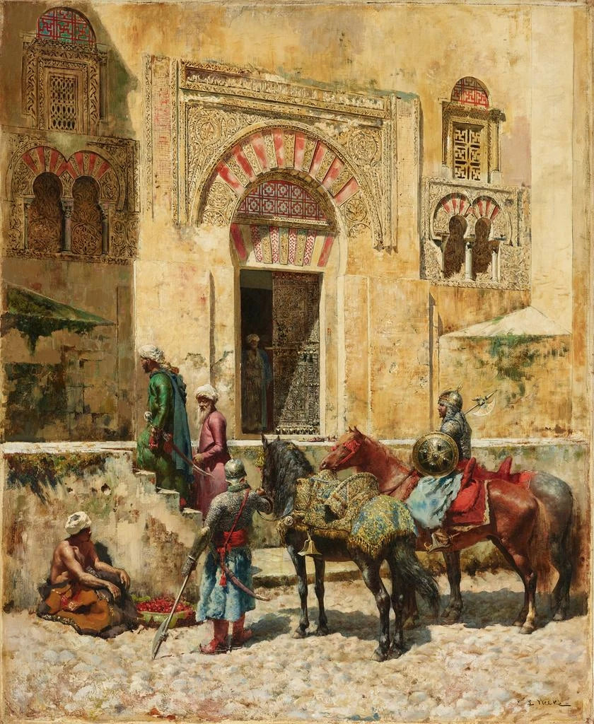 Edwin Lord Weeks, urodzony w 1849 roku, jest jednym z najbardziej wpływowych amerykańskich artystów XIX wieku w dziedzinie orientalizmu. Nieustępliwy podróżnik, przemierzał krańce Orientu, chłonąc kulturę i tradycje lokalne, co głęboko odcisnęło piętno na jego twórczości. Jego fascynacja architekturą islamską i codziennym życiem ludów orientalnych przejawia się w jego obrazach, na których potrafi uchwycić duszę miejsc, które przedstawia. Weeks zdołał zbudować most między Zachodem a Orientem, oferując widzom romantyczną, lecz pełną szacunku wizję tych cywilizacji. Jego wpływ wykracza poza własną twórczość artystyczną,
