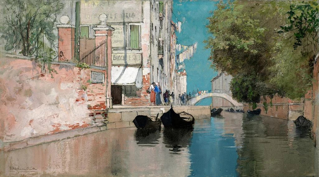 Venise : hołd dla magii Serenissimy Druk artystyczny Wenecji przenosi nas w czarującą atmosferę tego ikonicznego miasta, gdzie woda i architektura splatają się w poetycznym tańcu. Francis Hopkinson Smith, poprzez swoje dzieło, uchwycił złote światło słońca odbijające się od kanałów, tworząc grę kolorów, która przywołuje magię Serenissimy. Gondole płyną spokojnie, podczas gdy fasady historycznych budynków majestatycznie wznoszą się ku niebu. Dzieło emanuje wrażeniem ruchu i życia, zachęcając widza do wyobrażenia sobie spaceru wąskimi uliczkami i malowniczymi mostami. Francis Hopkinson Smith : artysta o wielu talentach Francis Hopkinson Smith, aktywny pod koniec XIX wieku i na początku XX wieku, jest amerykańskim artystą o różnorodnych talentach, od malarstwa po pisarstwo. Pod wpływem podróży po Europie rozwija styl impresjonistyczny, który podkreśla światło i kolor. Wenecja jest jednym z jego najsłynniejszych dzieł, świadczącym o jego podziwie dla tego unikalnego miasta. Poprzez swoje obrazy Smith potrafi przekazać istotę Wenecji, uchwycić jej urok i tajemnicę. Jego zdolność do uwieczniania scen z codziennego życia czyni go niezastąpionym artystą swojego pokolenia. Dekoracyjny nabytek o wielu zaletach Wybór druk artystyczny Wenecji to inwestycja w dzieło sztuki, które rozświetli Twoje wnętrze, niezależnie od tego, czy będzie to salon, biuro czy sypialnia. Jakość tego druku zapewnia imponującą wierną reprodukcję szczegółów oryginalnego dzieła, pozwalając w pełni docenić piękno sceny. Dzięki żywym kolorom i romantycznej atmosferze, ten obraz wnosi do wnętrza odrobinę elegancji i wyrafinowania. Wkomponowując tę płótno w swoją przestrzeń, tworzysz inspirującą atmosferę, jednocześnie oddając hołd artystycznemu dziedzictwu Francisa Hopkinson Smitha.