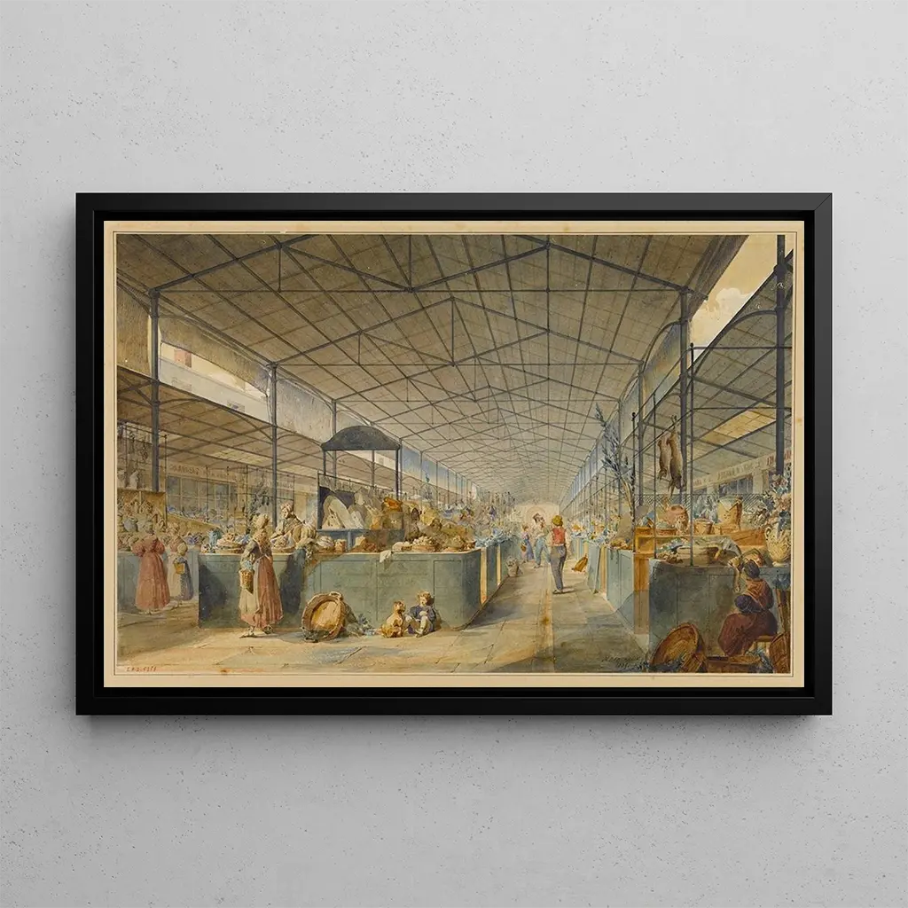Vue de l'Intérieur des Halles : une immersion dans la vie parisienne. La toile "Vue de l'Intérieur des Halles" de Max Berthelin nous plonge au cœur de l'effervescence parisienne du XIXe siècle. Les couleurs vibrantes et les détails minutieux capturent l'animation des halles, où se mêlent marchands, clients et produits frais. La lumière naturelle filtre à travers les structures métalliques, créant un jeu d'ombres et de lumières qui donne vie à cette scène quotidienne. L'atmosphère est à la fois chaleureuse et dynamique, invitant le spectateur à ressentir l'énergie de ce lieu emblématique. Berthelin réussit à immortaliser un moment fugace, transformant une simple vue en une véritable célébration de la vie urbaine. Max Berthelin : un témoin de l'ère impressionniste. Max Berthelin, peintre français actif à la fin du XIXe siècle, est souvent associé au mouvement impressionniste. Influencé par des artistes tels que Monet et Renoir, il développe un style caractérisé par des coups de pinceau rapides et des couleurs éclatantes. Sa carrière est marquée par une volonté de capturer la modernité de son époque, en se concentrant sur des scènes de la vie quotidienne. "Vue de l'Intérieur des Halles" illustre parfaitement cette quête, témoignant de l'importance des halles comme symbole de la vie citadine. Berthelin, à travers ses œuvres, nous offre un aperçu précieux de la société française en pleine transformation. Une acquisition décorative aux multiples atouts. La reproduction de "Vue de l'Intérieur des Halles" est une pièce décorative idéale pour enrichir votre intérieur, que ce soit dans un salon, un bureau ou une chambre. Sa qualité d'impression et sa fidélité à l'œuvre originale garantissent un rendu esthétique captivant. Ce tableau attire le regard et suscite des conversations, tout en apportant une touche d'élégance et d'histoire à votre décoration. En choisissant cette toile, vous optez pour une œuvre qui non seulement embellit votre espace, mais qui évoque également la richesse culturelle de Paris à travers le regard d'un artiste talentueux.