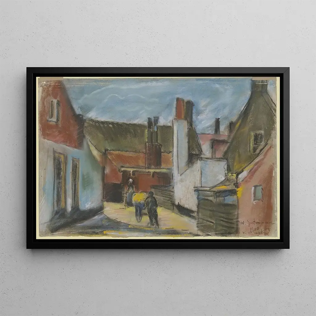 "Rue de Village avec Chariot" de Wilhelm Gutmann est une œuvre qui capture l'essence de la vie villageoise avec une grande finesse. Les couleurs terreuses et les touches de vert évoquent un paysage bucolique, tandis que le chariot, symbole de l'activité quotidienne, attire le regard. La composition est soigneusement agencée, avec des personnages animés qui ajoutent une dimension narrative à la scène. Chaque détail, des maisons aux arbres, contribue à créer une atmosphère chaleureuse et accueillante, invitant le spectateur à s'immerger dans ce moment de vie simple et authentique.