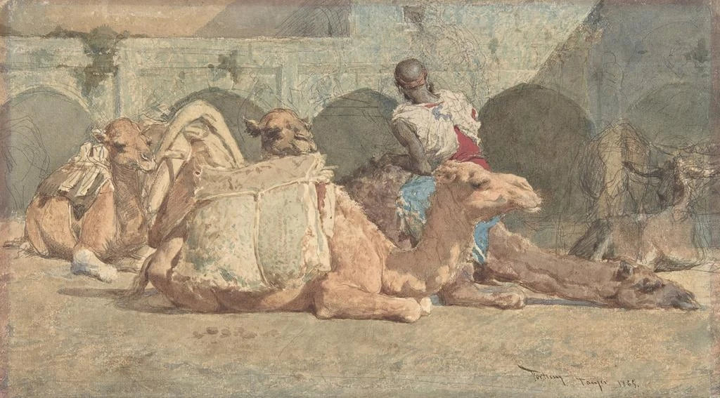 Wielbłądy odpoczywające w Tangerze - Mariano Fortuny Marsal
