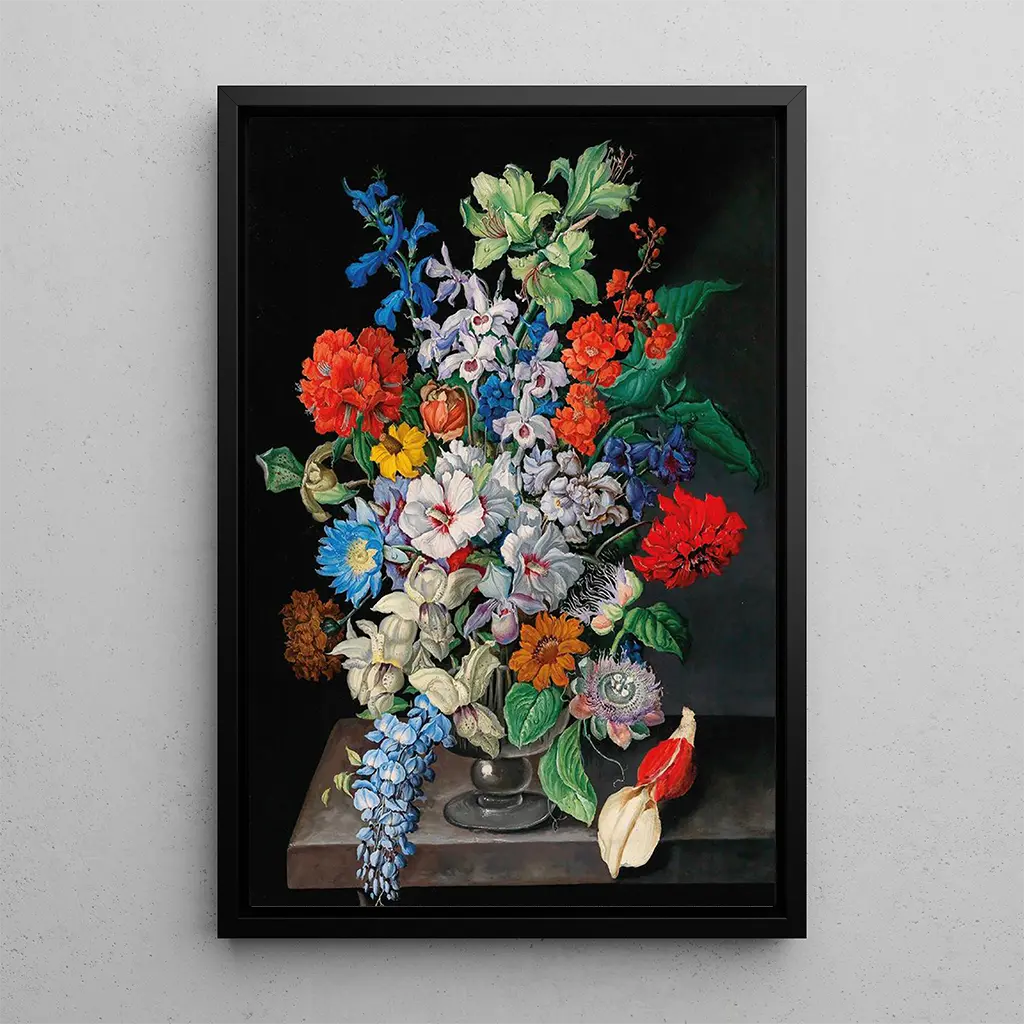 W tym pełnym życia dziele Sebastian Wegmayr zaprasza nas do zanurzenia się w bujnym, kwiatowym świecie. Druk artystyczny "Duży bukiet kwiatów" wyróżnia się jaskrawą paletą barw, gdzie żywe odcienie płatków splatają się harmonijnie. Technika malarstwa olejnego używana przez artystę pozwala uchwycić światło i teksturę kwiatów, tworząc atmosferę jednocześnie radosną i uspokajającą. Każdy szczegół, od delikatnych niuansów po subtelne cienie, przyczynia się do ożywienia tej kompozycji, czyniąc ten druk artystyczny prawdziwym hołdem dla piękna natury.