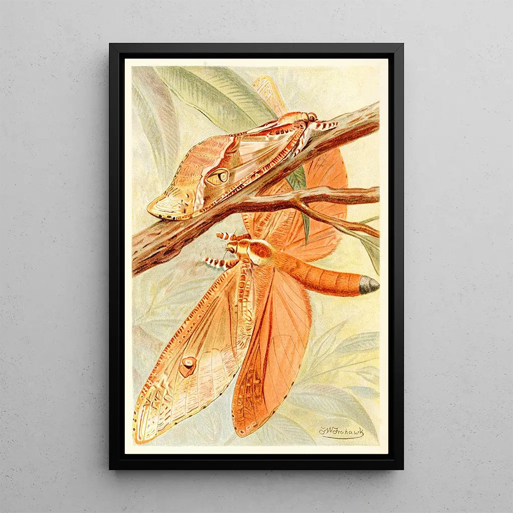 Obraz "Grand Sphinx Mite" autorstwa Fredericka Williama Frohawka jest celebracją piękna owadów, precyzyjnie oddając delikatne szczegóły tego fascynującego owada. Kompozycja ukazuje Sphinx Mite w majestatycznej pozie, otoczony naturalnym środowiskiem pełnym żywych kolorów. Zielone i brązowe odcienie harmonijnie się przenikają, tworząc atmosferę zarówno spokojną, jak i dynamiczną. Technika Frohawka, łącząca realizm z wrażliwością, pozwala docenić teksturę skrzydeł i finezję wzorów, zachęcając widza do zanurzenia się w fascynujący świat motyli.