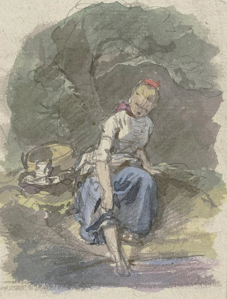 Siedząca wieśniaczka w lesie - Jakob Becker