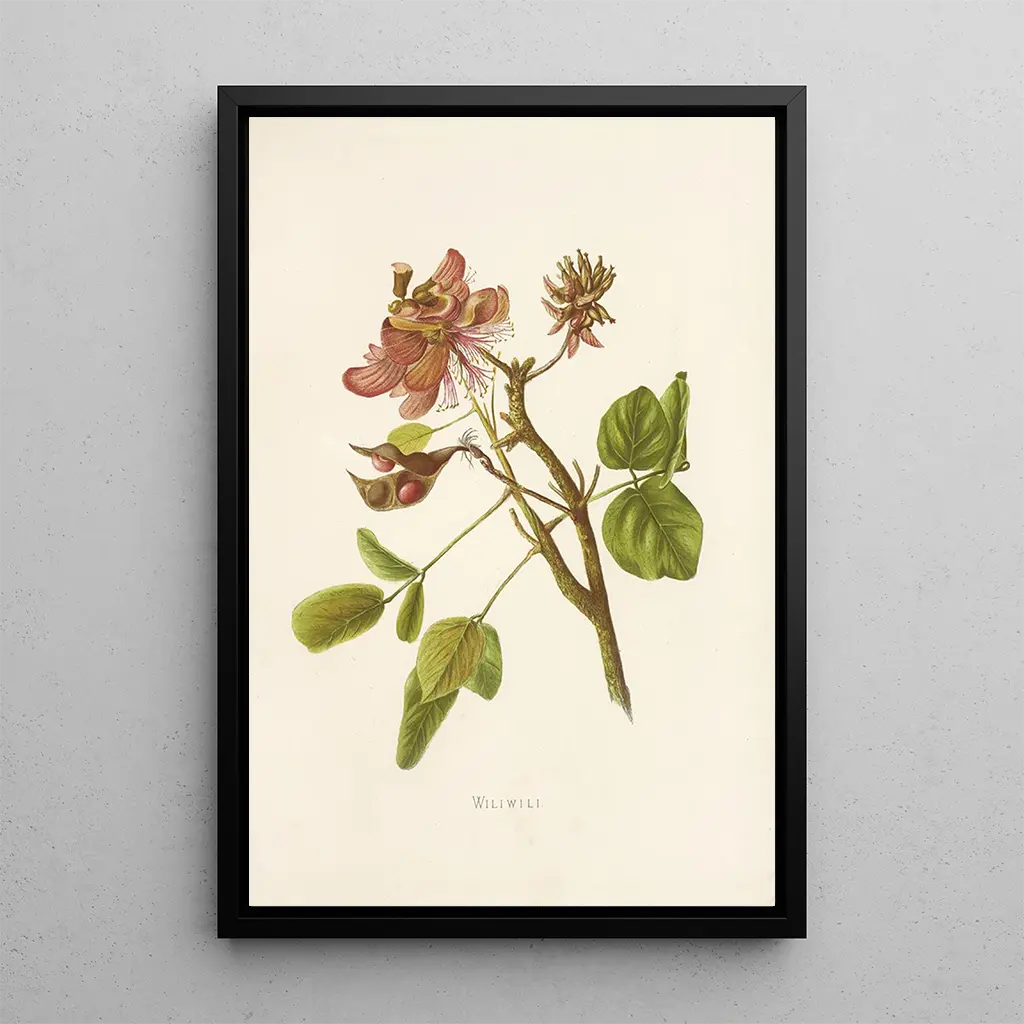 Druk artystyczny Wiliwili autorstwa Isabelli McHutcheson Sinclair przenosi nas do żywego świata, w którym natura wyraża się z blaskiem. Żywe odcienie zieleni i czerwieni harmonijnie się łączą, przywołując bogactwo tropikalnej flory. Technika akwareli, używana z finezją, tworzy delikatne niuanse, które ożywiają każdą liść i płatek. Ogólna atmosfera dzieła zachęca do spokojnej kontemplacji, jakby można było niemal usłyszeć szept wiatru przez gałęzie. Sinclair udaje się uchwycić istotę naturalnego piękna, oferując okno na bujny świat.