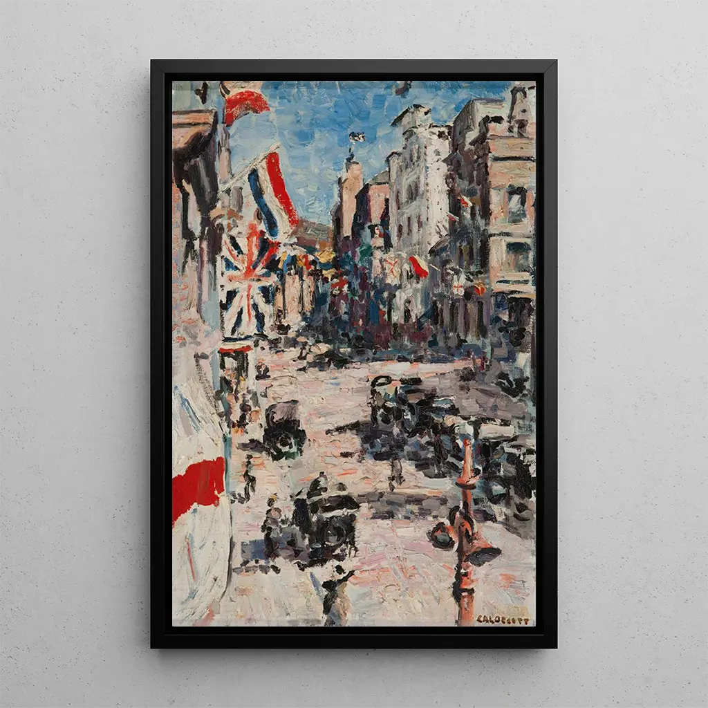 Harry Caldecott, aktywny na początku XX wieku, jest znany z umiejętności uchwycenia codziennych momentów z nutą wielkości. Pod wpływem ruchu artystycznego realizmu, potrafił połączyć tradycję z nowoczesnością w swoich drukach artystycznych. Jego prace odzwierciedlają zmiany społeczne i kulturowe jego epoki, w tym wzrost klasy średniej i rosnące zainteresowanie wydarzeniami publicznymi. Caldecott był również inspirowany przez współczesnych mu artystów, integrując elementy impresjonizmu, pozostając wiernym swojemu wyrazistemu stylowi. Jego wkład w brytyjskie sztuki jest niezaprzeczalny, a "Visite royale 1925" jest tego wyraźnym przykładem.