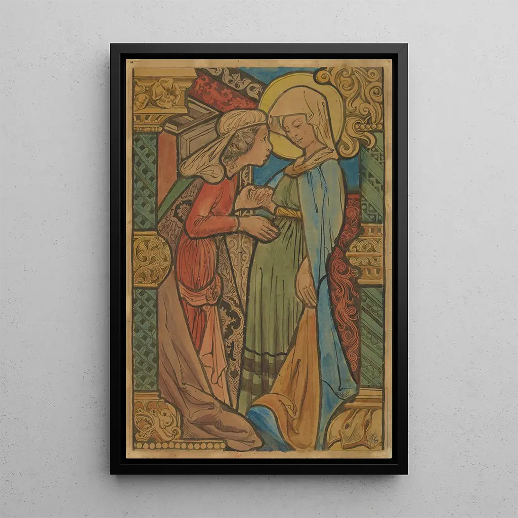 Druk artystyczny "Visitation" autorstwa Stanisława Wyspiańskiego przedstawia moment pełen duchowości i emocji. Postacie Maryi i Elżbiety, otoczone delikatnym i ciepłym światłem, zdają się zwierzać sobie nawzajem w atmosferze pełnej czułości. Kolory pastelowe, przeplatane bardziej żywymi akcentami, tworzą harmonijną równowagę, podczas gdy dynamiczna kompozycja kieruje wzrok przez tę świętą scenę. Wyspiański, dzięki swojemu talentowi, potrafi uchwycić intymność tego biblijnego momentu, czyniąc z tego dzieła prawdziwe zaproszenie do refleksji nad więzami rodzinnymi i duchowymi.