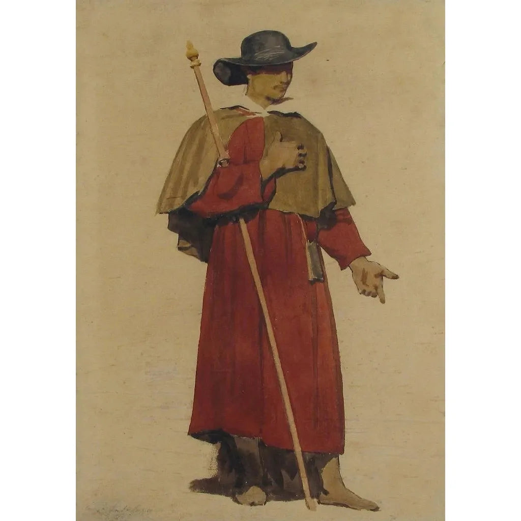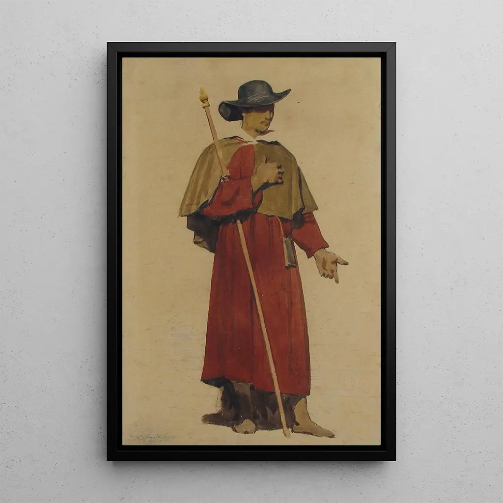 Druk artystyczny Pielgrzym włoski przenosi nas w scenę pełną emocji i symbolizmu. Główny bohater, ubrany w tradycyjny strój, symbolizuje podróżnika poszukującego sensu. Kolory ziemiste i delikatne cienie tworzą atmosferę tajemnicy i głębi. Technika oleju na płótnie pozwala oddać szczegóły twarzy i ubrań z dużą precyzją, podkreślając wyraz determinacji i wiary. To dzieło zachęca do refleksji nad wewnętrzną podróżą i duchowymi aspiracjami, jednocześnie oddając esencję epoki, w której wiara i podróż były ściśle powiązane.