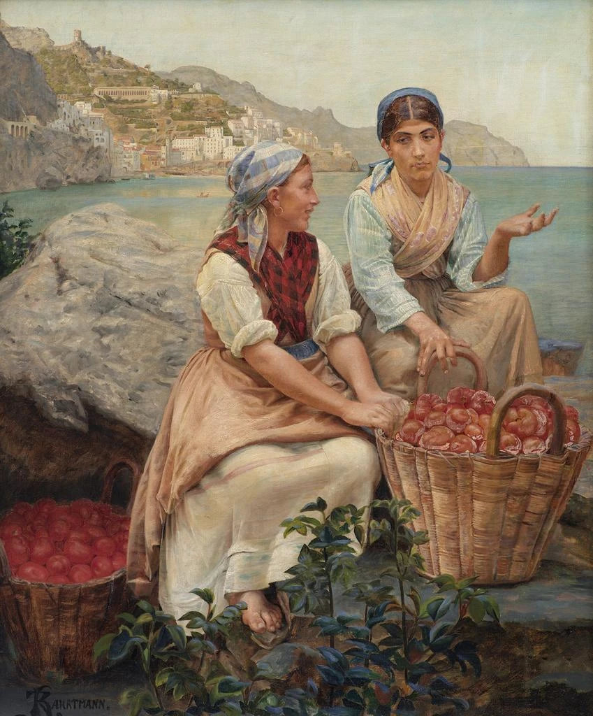 Włoskie dziewczęta z pomidorami w koszach - Kristian Zahrtmann