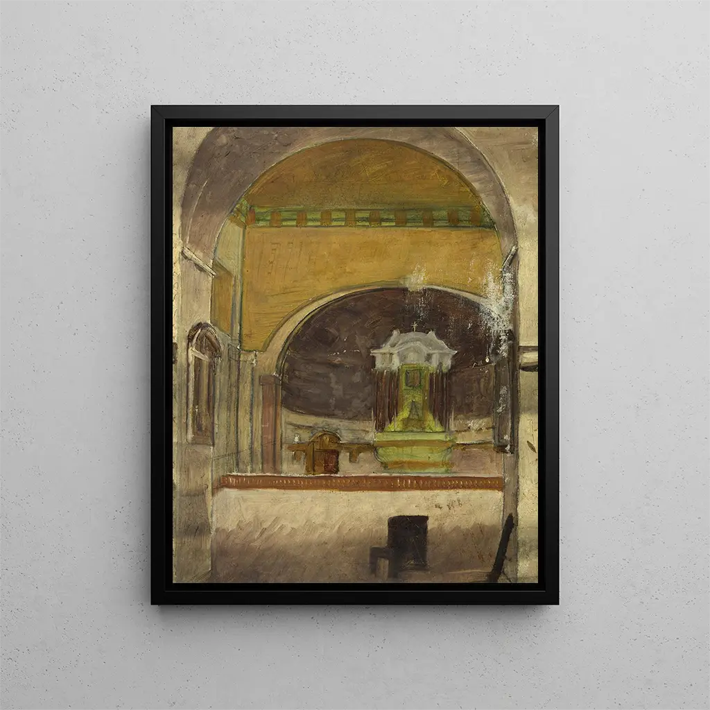 Reprodukcja Wnętrze kościoła Asyżu - Arthur Joseph Gueniot – Fascynujące wprowadzenie W rozległym panoramie historii sztuki niektóre dzieła wyróżniają się swoją zdolnością do uchwycenia istoty miejsca, atmosfery, emocji. "Wnętrze kościoła Asyżu - Arthur Joseph Gueniot" jest jednym z tych dzieł, które przenoszą widza w serce sanktuarium pełnego spokoju i duchowości. Delikatne światło przenikające przez witraże, subtelne linie sklepienia oraz harmonijne rozmieszczenie elementów architektonicznych zachęcają do introspekcyjnej kontemplacji. Ten obraz, będący prawdziwą hołd dla piękna przestrzeni sakralnych, wywołuje poszukiwanie wewnętrznego spokoju, oddając hołd majestatowi średniowiecznych kościołów, jednocześnie wpisując się w własny, unikalny styl. Styl i wyjątkowość dzieła Dzieło Arthura Josepha Gueniot wyróżnia się realistycznym podejściem i staranną dbałością o szczegóły. Każdy pociągnięcie pędzla wydaje się naładowane intencją, pragnieniem uchwycenia nie tylko wyglądu kościoła, ale także jego duszy. Odmiany kolorów wybrane przez artystę, od ciepłych tonów po głębsze cienie, tworzą atmosferę jednocześnie uspokajającą i tajemniczą. Kompozycja jest starannie zaaranżowana, każdy element ma swoje miejsce, przyczyniając się do ogólnej równowagi sceny. Gueniot potrafi nawiązać dialog między architekturą a światłem, przemieniając przestrzeń w immersyjne doświadczenie wizualne. Ta zdolność do łączenia sacrum z codziennością w harmonii wizualnej czyni to dzieło tak wyjątkowym i ponadczasowym. Artysta i jego wpływ Arthur Joseph Gueniot, choć mniej znany niż niektórzy z jego współczesnych, pozostawił niezatarte piętno w świecie sztuki. Jego ścieżka artystyczna jest naznaczona pasją do pejzaży i historycznych architektur, inspirowaną przez wielkich mistrzów przeszłości. Gueniot, dzięki swojemu unikalnemu stylowi, potrafił zaadaptować tradycyjne techniki, jednocześnie wprowadzając własną wizję. Jego dzieło świadczy o głębokim szacunku dla dziedzictwa artystycznego, jednocześnie dążąc do odświeżenia spojrzenia na te miejsca pełne historii. Jego wpływ czuje się u wielu współczesnych artystów, którzy starają się uchwycić