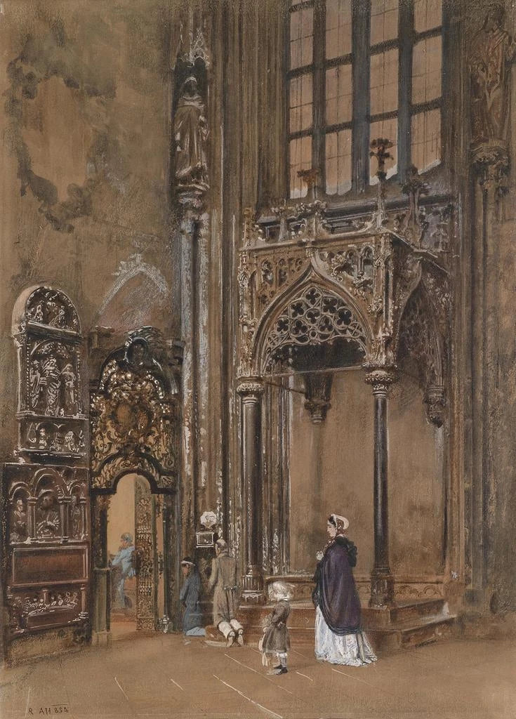 Rudolf von Alt, austriacki malarz XIX wieku, jest znany ze swoich pejzaży i wnętrz kościołów, które uchwycają światło w unikalny sposób. Pod wpływem romantyzmu potrafił połączyć realizm z poezją w swoich dziełach. Jego kariera trwała kilka dekad, podczas których zgłębiał subtelności architektury i efektów świetlnych. Alt był również aktywnym członkiem Akademii Sztuk Pięknych w Wiedniu, przyczyniając się do rozwoju austriackiego artystycznego dziedzictwa. Jego obrazy, takie jak "Wnętrze kościoła", stanowią cenne świadectwa jego epoki i niezaprzeczalnego talentu.