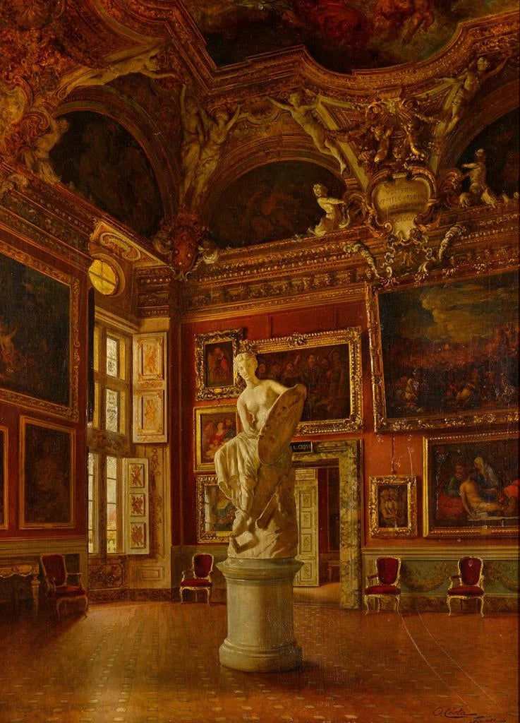 Wnętrze Pałacu Pitti: zanurzenie się w florentyńskiej elegancji Wnętrze Pałacu Pitti, dzieło Oreste Costa, przenosi nas w świat przepychu i majestatu architektury florentyńskiej. Obraz precyzyjnie oddaje szczegóły wystrojów sal, gdzie gry światła ukazują bogactwo materiałów i ozdób. Żywe kolory i delikatne odcienie tworzą ciepłą atmosferę, zachęcając widza do odkrywania każdego zakątka tego miejsca pełnego historii. Ta reprezentacja nie ogranicza się do zwykłego dekoru, lecz także przywołuje codzienne życie szlachty tamtej epoki, oferując fascynujący wgląd w ich styl życia. Oreste Costa: świadek włoskiego sztuki XIX wieku Oreste Costa, aktywny w XIX wieku, był malarzem, który potrafił uchwycić esencję włoskiego życia poprzez swoje dzieła. Wykształcony w kontekście romantyzmu, był pod wpływem wielkich mistrzów renesansu, zwłaszcza w sposobie traktowania światła i przestrzeni. Costa często wybierał tematy związane z architekturą i naturą, okazując głęboki szacunek dla swojego dziedzictwa kulturowego. Wnętrze Pałacu Pitti jest przykładem jego pracy, ukazującym nie tylko jego talent, ale także znaczenie ochrony dziedzictwa artystycznego. Dekoracyjny druk artystyczny o wielu zaletach Druk artystyczny wnętrza Pałacu Pitti to doskonały wybór do ozdobienia Twojej przestrzeni życiowej, niezależnie od tego, czy to salon, biuro czy sypialnia. Jakość tego druku zapewnia wierne oddanie szczegółów oryginalnego dzieła, pozwalając w pełni docenić piękno tej historycznej sceny. Dodając ten obraz do swojej dekoracji, wprowadzasz odrobinę elegancji i wyrafinowania, tworząc jednocześnie ciepłą i przyjazną atmosferę. To dzieło z pewnością zachwyci Twoich gości i wzbogaci Twoją kolekcję sztuki.