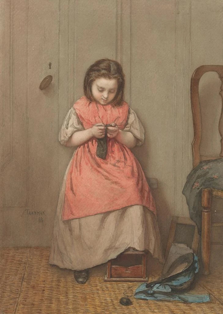 Obraz wnętrza z dziewczyną dziergającą na drutach - Jacob Taanman | Druk artystyczny