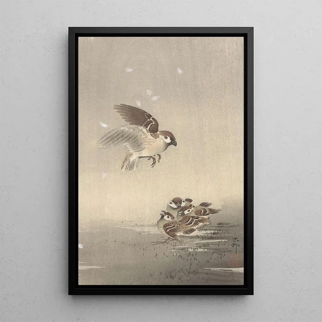 Moineau friquet avec jeune : un instant de tendresse aviaire Dans cette druk artystyczny du tableau "Moineau friquet avec jeune", Ohara Koson capture un moment délicat de la nature. Les couleurs douces et les nuances subtiles de brun et de beige évoquent une atmosphère paisible, tandis que la technique de l'estampe japonaise met en valeur la finesse des détails. Le moineau, représenté avec une grande précision, semble veiller sur son petit, créant une scène touchante qui invite à la contemplation. L'arrière-plan flou accentue la simplicité et l'élégance de cette interaction entre la mère et son jeune, offrant une vision apaisante de la vie sauvage. Ohara Koson : un maître de l'estampe japonaise Ohara Koson, actif durant la période Taisho au Japon, est reconnu pour ses œuvres qui célèbrent la beauté de la nature et la vie quotidienne. Influencé par les traditions artistiques japonaises, il a su allier des techniques anciennes à une sensibilité moderne, faisant de lui un représentant majeur du mouvement shin-hanga. Ses œuvres, souvent empreintes de sérénité, reflètent une profonde admiration pour le monde naturel. Koson a su capter l'essence des animaux et des paysages, transformant des scènes ordinaires en véritables poèmes visuels. Son héritage perdure, inspirant de nombreux artistes contemporains. Une acquisition décorative aux multiples atouts La druk artystyczny "Moineau friquet avec jeune" est une pièce idéale pour enrichir votre décoration intérieure. Que ce soit dans un salon, un bureau ou une chambre, ce tableau apporte une touche de douceur et de sérénité à votre espace. Sa qualité d'impression garantit une fidélité aux couleurs et aux détails de l'œuvre originale, faisant de cette toile un véritable atout esthétique. En choisissant cette druk artystyczny, vous optez pour une œuvre qui non seulement embellit votre intérieur, mais évoque également une connexion avec la nature et un moment de tendresse.