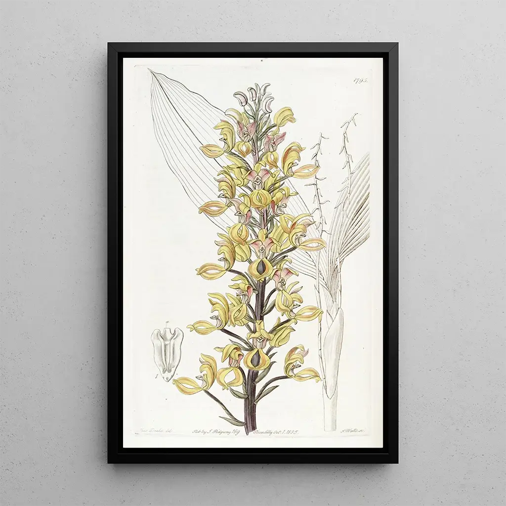 La druk artystyczny Superbe Govenia de Sydenham Edwards est une œuvre qui évoque la délicatesse et l'élégance des fleurs. Avec ses teintes vibrantes de violet et de blanc, cette toile attire immédiatement le regard. Les détails minutieux des pétales, rendus avec une précision remarquable, créent une atmosphère de sérénité et de raffinement. La technique de l'aquarelle utilisée par Edwards permet de capturer la lumière de manière subtile, donnant vie à cette plante exotique. Chaque élément de la composition semble danser sous un doux rayon de soleil, invitant à une contemplation prolongée de la nature.