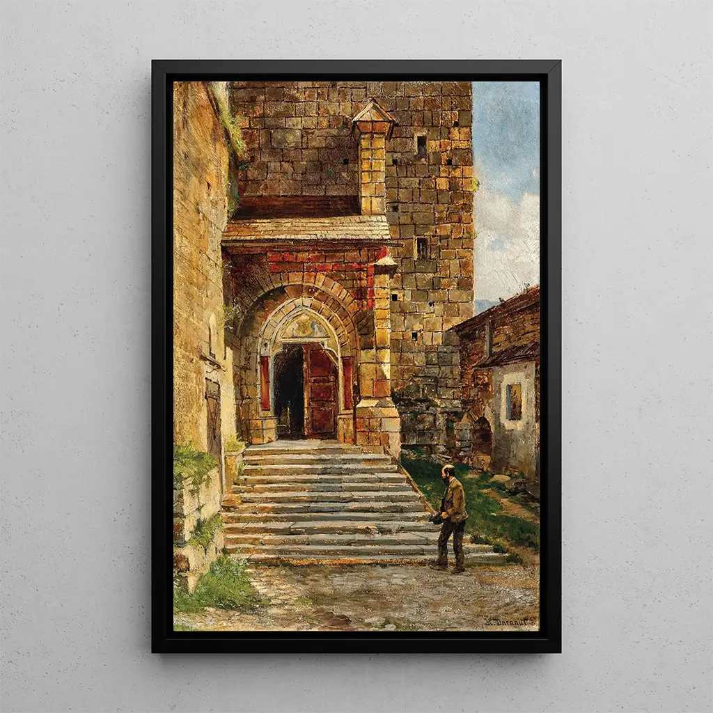 Cette druk artystyczny de Montée vers l'église à Eisenerz nous transporte dans un paysage montagnard empreint de tranquillité. Les couleurs douces et naturelles, allant des verts apaisants aux bruns chaleureux, créent une atmosphère de paix et de recueillement. La technique de peinture à l'huile de Darnaut permet de capturer la lumière du soleil filtrant à travers les arbres, illuminant le chemin qui mène à l'église. Ce tableau évoque une invitation à la contemplation, à la découverte d'un lieu où la nature et la spiritualité se rencontrent harmonieusement.