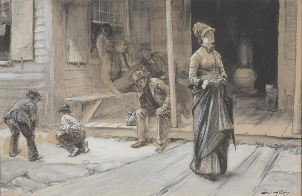 Edwin Austin Abbey, amerykański malarz i ilustrator z XIX wieku, jest znany ze swojego unikalnego stylu łączącego realizm z wpływami prerafaelitów. Jego kariera była naznaczona zainteresowaniem literaturą i mitologią, co odzwierciedla się w jego dziełach. Abbey mieszkał w Anglii, gdzie był pod wpływem europejskich tradycji artystycznych. Jego prace, często skupiające się na tematach historycznych i literackich, pozostawiły trwały ślad w świecie sztuki. "Z dumą na czołach" świadczy o jego umiejętności uchwycenia momentów o dużej intensywności emocjonalnej, czyniąc go niekwestionowanym artystą swojego pokolenia.