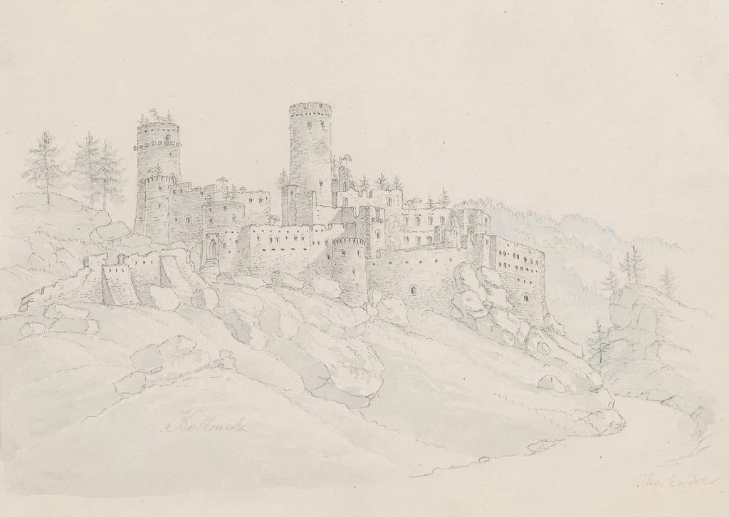 Thomas Ender, austriacki malarz XIX wieku, jest znany z dzieł celebrujących piękno europejskich krajobrazów. Wykształcony w kontekście romantyzmu, umiał łączyć realizm z idealizacją w swoich przedstawieniach. Ender podróżował po Austrii i poza nią, czerpiąc inspirację z malowniczych pejzaży, które spotkał. Jego styl, charakteryzujący się żywymi kolorami i skrupulatną dbałością o szczegóły, wywarł wpływ na wielu artystów jego epoki. Druk artystyczny "Château de Kollmitz" jest doskonałym przykładem jego talentu do uchwycenia magii historycznych miejsc.