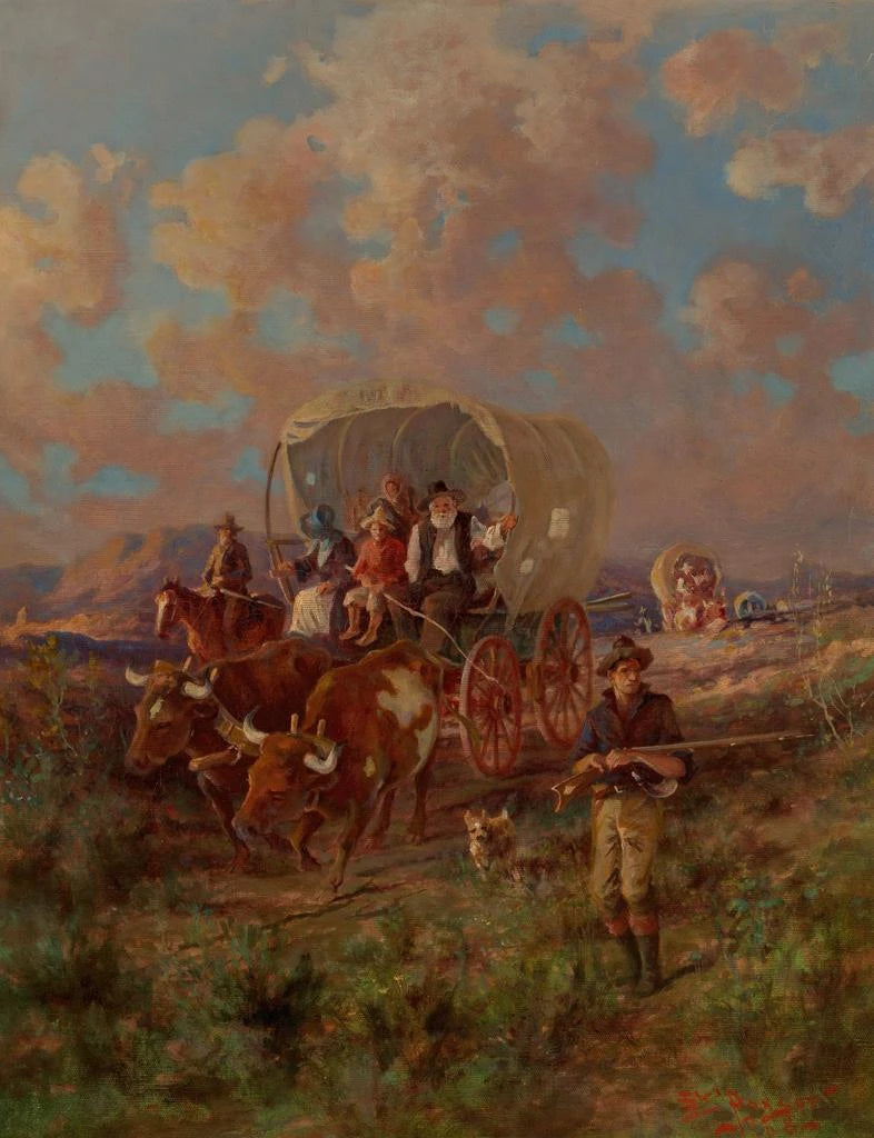 Edgar Samuel Paxson, urodzony w 1852 roku, jest często uważany za jednego z wielkich wizualnych narratorów amerykańskiej historii. Jego pasja do Dzikiego Zachodu i pragnienie zachowania opowieści pionierów doprowadziły go do zostania niezastąpionym artystą ruchu realizmu. Poprzez swoje dzieła potrafił uchwycić historyczne momenty z taką intensywnością, że wywarły one wpływ na kolejne pokolenia artystów. Paxson nie ograniczał się do przedstawiania scen z codziennego życia; opowiadał historie, wywoływał emocje i ożywiał epoki. Jego prace nie tylko wzbogaciły amerykańskie dziedzictwo artystyczne, ale także przyczyniły się do kształtowania zbiorowej percepcji dzikiego Zachodu. Oddając hołd kulturze i historii swojego kraju, Paxson pozostawił niezatarte ślady na świecie