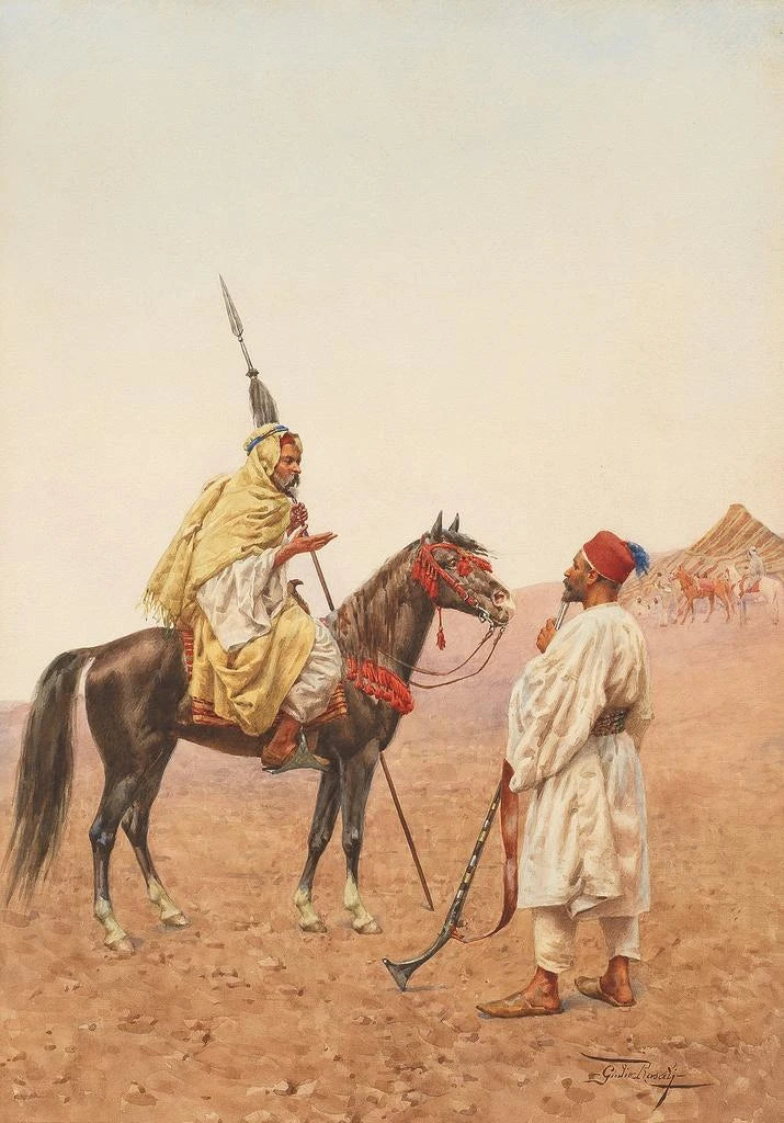 Giulio Rosati, włoski malarz XIX wieku, jest znany z dzieł, które uchwyciły istotę orientalizmu. Pod wpływem podróży do Afryki Północnej i Bliskiego Wschodu, potrafił oddać piękno i egzotykę tych regionów poprzez swoje sztuki. Rosati rozwijał się w okresie, gdy orientalizm osiągał szczyt popularności, a jego obrazy odzwierciedlały fascynację kulturami orientalnymi, często idealizowanymi przez europejskich artystów. Jego prace, bogate w szczegóły i kolory, przyczyniły się do kształtowania zachodniej percepcji tych odległych ziem, czyniąc go kluczowym aktorem tego ruchu artystycznego.