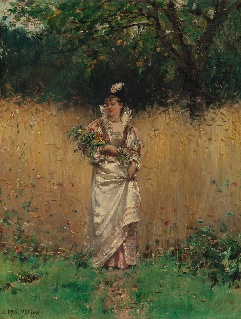 Druk artystyczny Cueillette de fleurs sauvages - Adrien Moreau – Wciągające wprowadzenie W tętniącym życiem świecie sztuki XIX wieku, dzieło "Cueillette de fleurs sauvages" autorstwa Adriena Moreau wyróżnia się swoją świeżością i delikatnością. Ten ikoniczny kawałek zaprasza widza do zanurzenia się w zawieszonym momencie natury, gdzie efemeryczna piękność dzikich kwiatów jest ukazana z niezwykłą finezją. Artysta, poprzez tę kompozycję, potrafi uchwycić istotę życia na świeżym powietrzu, jednocześnie celebrując prostotę i autentyczność francuskich krajobrazów. Druk artystyczny Cueillette de fleurs sauvages - Adrien Moreau oferuje tym samym okno na świat, w którym natura wyraża się w pełnej krasie, przenosząc spojrzenie w serce sceny pełnej poezji i spokoju. Styl i wyjątkowość dzieła Styl Adriena Moreau charakteryzuje się subtelnym realizmem, w którym każdy szczegół jest starannie obserwowany i odtwarzany z niezrównaną precyzją. W "Cueillette de fleurs sauvages" artysta używa palety żywych i naturalnych kolorów, które odzwierciedlają odcienie migoczących kwiatów i otaczającej zieleni. Gra światła i cienia, zręcznie zaaranżowana, nadaje scenie głębię i wyrazistość, zachęcając oko do eksploracji najdrobniejszych zakamarków dzieła. Kompozycja, zarówno dynamiczna, jak i harmonijna, świadczy o idealnym balansie między elementami, gdzie postacie ludzkie z gracją wtapiają się w floralny krajobraz. Ta symbioza między człowiekiem a naturą odzwierciedla głęboko zakorzenioną wizję artystyczną romantyzmu, jednocześnie otwierając się na wpływy impresjonistyczne, które pojawiły się w tym okresie. Artysta i jego wpływ Adrien Moreau, francuski malarz i ilustrator XIX wieku, jest często doceniany za talent do przedstawiania życia wiejskiego i scenek rodzajowych. Wykształcony w École des Beaux-Arts, rozwija styl łączący realizm z romantyzmem, pod wpływem wielkich mistrzów swojego czasu. Moreau jest również gorącym obrońcą natury, a jego dzieła odzwierciedlają wyostrzoną wrażliwość na krajobrazy i florę. Poprzez swoje przedstawienia bierze udział w ruchu artystycznym, który promuje powrót do natury, w opozycji do rosnącej industrializacji jego epoki. Jego wpływ na środowisko artystyczne jest niezaprzeczalny, inspirując wielu współczesnych do eksplorowania podobnych tematów. "Cueillette de fleurs sauvages" wpisuje się w tę linię, świadcząc o jego zaangażowaniu w piękno natury i codzienne życie. Wyjątkowa dekoracja ścienna podpisana przez Artema Legranda Wybór druku artystycznego "Cueillette de fleurs sauvages - Adrien Moreau" to decyzja na rzecz elementu dekoracyjnego, który wykracza poza zwykłą ozdobę. To dzieło