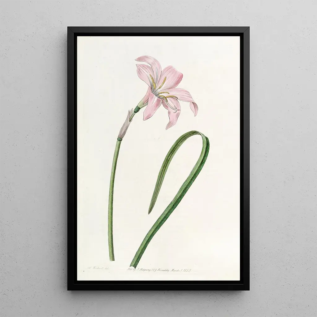 Obraz Zéphyranthe de Spofforth, również wykonany przez Sydenham Edwards, jest subtelnym przedstawieniem tej rzadkiej i eleganckiej rośliny. Odcienie bieli i różu splatają się z gracją, przywołując lekkość i kruchość rośliny. Technika akwareli pozwala uchwycić przezroczystość płatków, podczas gdy subtelnie zróżnicowane tło nawiązuje do uspokajającego środowiska naturalnego. To dzieło zachęca do kontemplacji, oferując chwilę spokoju tym, którzy je podziwiają, jakby przenosiło w tajemniczy ogród, gdzie króluje piękno natury.