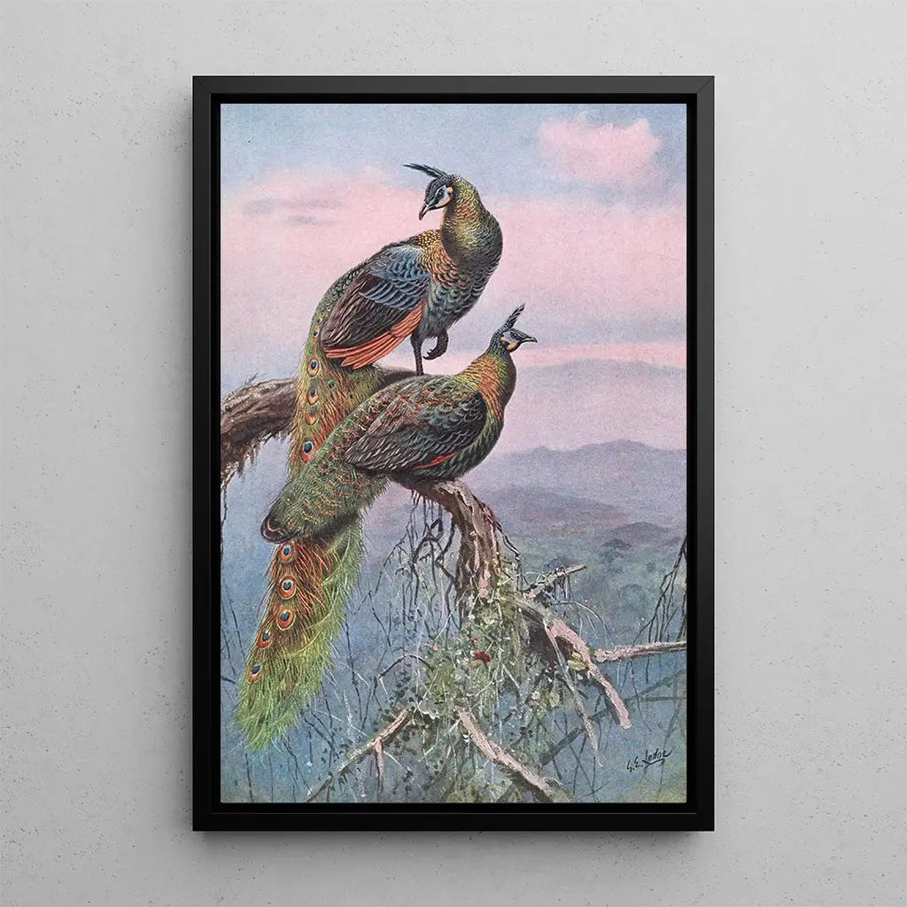 Obraz "Paon Vert" George'a Edwarda Lodge'a jest celebracją ptasiego splendoru. Z jego iryzującymi piórami i jaskrawymi kolorami, dzieło przedstawia tego majestatycznego ptaka w całej jego chwale. Lodge używa palety zieleni, błękitów i złota, które odzwierciedlają bogactwo natury. Starannie zrównoważona kompozycja przyciąga wzrok do rozłożonego ogona pawia, tworząc fascynujący efekt wizualny. Ten druk artystyczny zaprasza do zachwytu, oferując okno na fascynujący świat egzotycznych ptaków.
