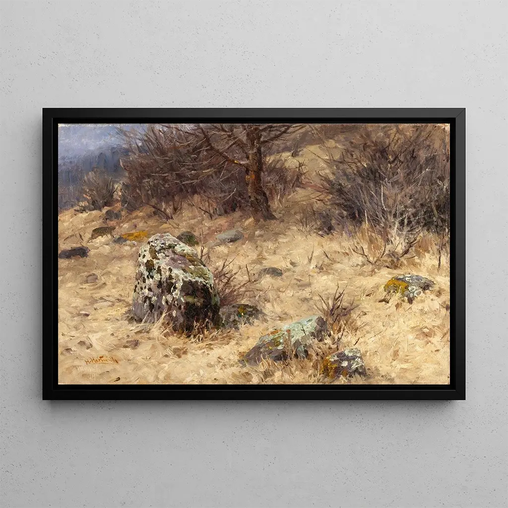 La druk artystyczny de Les Terres du Bécasse par Herman Hartwich nous plonge dans un univers rural riche en couleurs et en textures. Ce tableau, vibrant de vie, dépeint un paysage où la terre et le ciel se rencontrent dans une harmonie parfaite. Les teintes chaudes et terreuses évoquent la richesse de la nature, tandis que les détails des champs cultivés et des cieux nuageux ajoutent une profondeur à la scène. L'atmosphère qui se dégage de cette œuvre est celle d'une tranquillité bucolique, invitant à la contemplation des cycles de la vie.