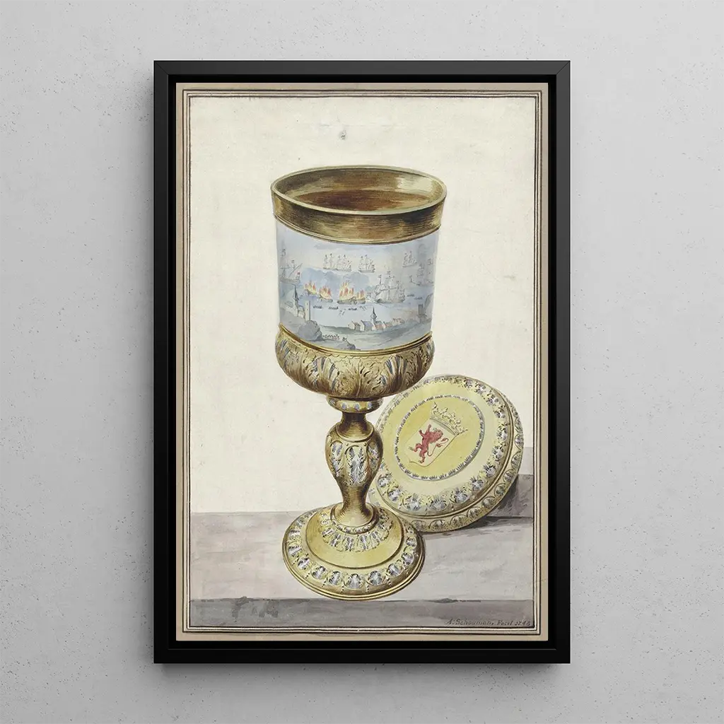 Złota misa z pokrywką: odrobina wyrafinowania i delikatności Druk artystyczny przedstawiający Złotą misę z pokrywką przenosi nas w świat luksusu i elegancji. To dzieło, wykonane z precyzyjną techniką, podkreśla ciepłe, złote barwy, które migoczą w świetle. Detale ozdobne, starannie wykonane, odzwierciedlają wyjątkowe rzemiosło, podczas gdy harmonijna kompozycja przyciąga wzrok i zachęca do podziwiania. Każdy element tego dzieła zdaje się opowiadać historię, opowieść o wyrafinowanym stylu życia, w którym każdy przedmiot jest głównym elementem dekoracji. Aert Schouman: mistrz XVII wieku o różnorodnych wpływach Aert Schouman, holenderski malarz XVII wieku, jest ceniony za swoje dzieła łączące realizm i barokowe ornamenty. Pod wpływem ówczesnych nurtów artystycznych, potrafił uchwycić piękno codziennych przedmiotów, przemieniając je w prawdziwe dzieła sztuki. Jego kariera rozwijała się w okresie, gdy sztuka martwej natury przeżywała rozkwit, a on wyróżniał się umiejętnością gry światłem i teksturami. Schouman był również inspirowany podróżami i wymianą kulturową, co pozwoliło mu wprowadzić do swoich prac elementy egzotyczne. Dekoracyjny nabytek o wielu zaletach Druk artystyczny przedstawiający Złotą misę z pokrywką to element dekoracyjny, który podkreśli każde wnętrze, niezależnie od tego, czy będzie to salon, biuro czy sypialnia. Jakość druku i wierne odwzorowanie szczegółów sprawiają, że jest to idealny wybór dla miłośników sztuki. To dzieło wnosi odrobinę elegancji i wyrafinowania, a jednocześnie stanowi doskonały temat do rozmów. Dzięki swojemu estetycznemu urokowi, doskonale wpisuje się w różnorodne aranżacje, dodając przestrzeni odrobinę uroku i wyrafinowania.