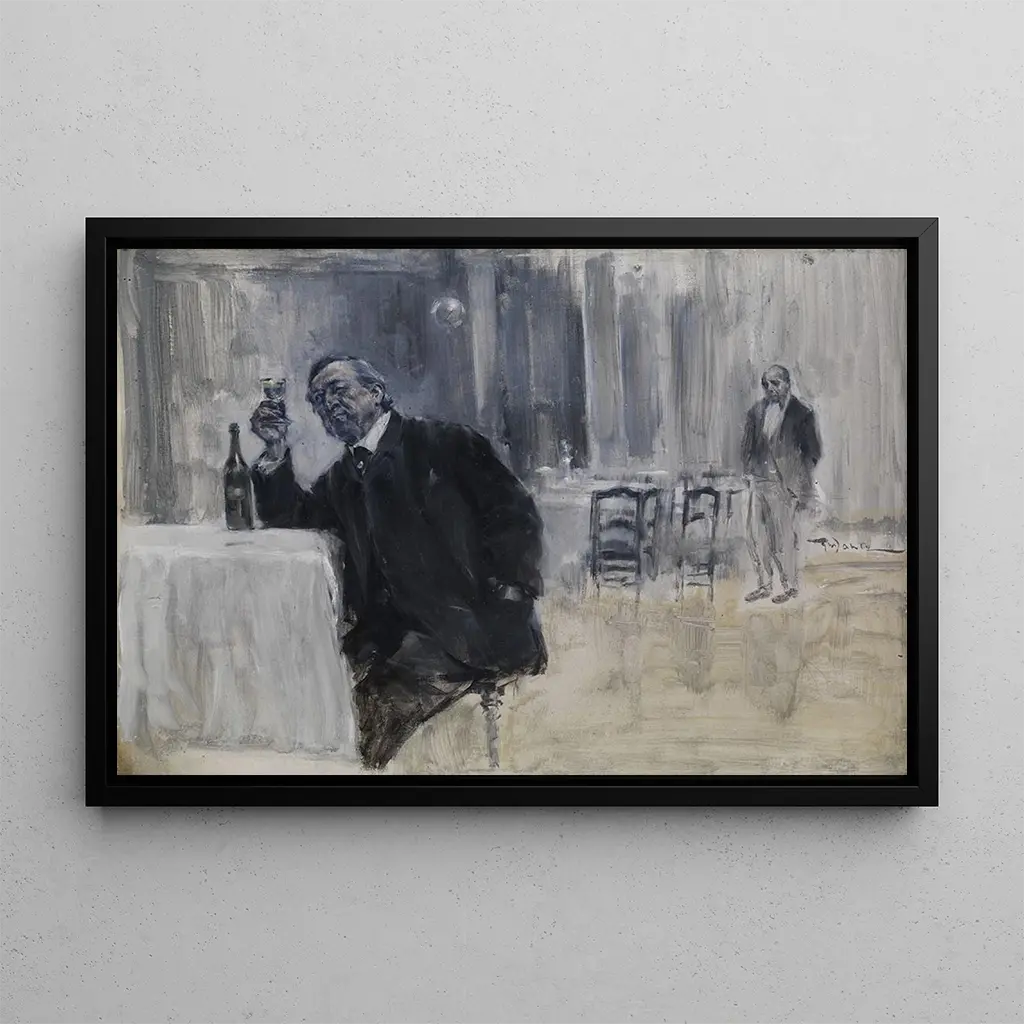Dans cette œuvre vibrante, Friedrich Wahle capture l'essence même de la convivialité autour du vin. Le tableau, riche en couleurs chaudes et en détails raffinés, dépeint un homme en pleine dégustation, entouré de bouteilles et de verres. La lumière joue un rôle essentiel, illuminant les reflets du vin et créant une atmosphère chaleureuse et accueillante. Les nuances de rouge et d'or évoquent non seulement le vin, mais aussi la richesse des moments partagés. Chaque élément de la composition, des visages expressifs aux objets soigneusement disposés, contribue à une ambiance de fête et de plaisir, invitant le spectateur à s'immerger dans cette scène de délectation.